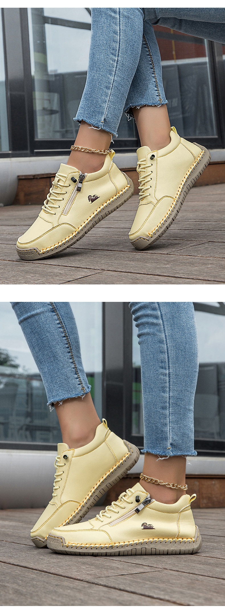 Giày Martin Nữ Cổ Thấp là mẫu giày boot nữ thuộc dòng giày cổ thấp nữ đang được ưa chuộng. Thiết kế giày da mờ với đường may thủ công tỉ mỉ, tạo nên vẻ ngoài cá tính và độc đáo. Giày có dây buộc và khóa kéo bên hông giúp dễ dàng điều chỉnh độ ôm chân. Phần đế giày cao khoảng 3cm, chất liệu mềm mại, tạo cảm giác thoải mái khi di chuyển. Sản phẩm có các màu sắc cơ bản như be, xám và đen, dễ dàng phối đồ với nhiều phong cách khác nhau. Giày Martin là lựa chọn lý tưởng cho những cô nàng yêu thích sự năng động và trẻ trung. | Tên sản phẩm: Giày Martin Nữ Cổ Thấp Da Mờ Buộc Dây Chiều Cao Đế Khoảng 3cm Màu Be, Xám, Đen. | Mã sản phẩm: B3550 - Giá: 700000đ. | Mã nhà sản xuất: TADRA - G02 | Danh mục sản phẩm: Giày boot Nữ - Giày cổ thấp Nữ.Hình ảnh sản phẩm