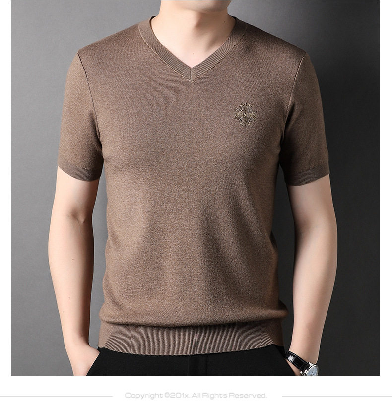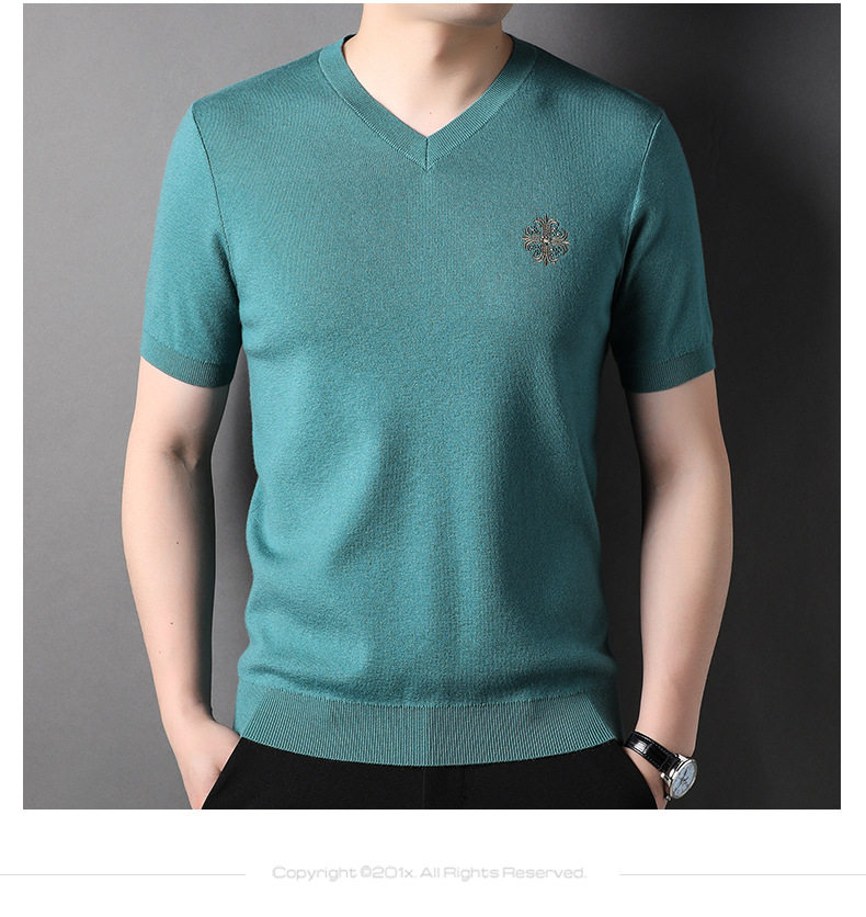 Áo Thun Cổ chữ V Nam Dệt Kim là một sản phẩm thời trang nam tính, thuộc dòng áo thun nam dệt kim. Với thiết kế cổ chữ V hiện đại, áo tạo nên vẻ ngoài lịch lãm, phù hợp với nhiều phong cách khác nhau. Chất liệu dệt kim mềm mại, thoáng mát mang đến sự thoải mái tối đa cho người mặc. Áo thun nam này có nhiều màu sắc đa dạng như Xanh, Nâu, Đen, Xám... giúp bạn dễ dàng lựa chọn. Sản phẩm này là sự lựa chọn hoàn hảo để thể hiện phong cách thời trang trung niên lịch lãm và cuốn hút. | Tên sản phẩm: Áo Thun Cổ chữ V Nam Dệt Kim Tay Ngắn Thời Trang Trung Niên Màu Xanh, Nâu, Đen, Xám.... | Mã sản phẩm: B6633 - Giá: 1050000đ. | Mã nhà sản xuất: JIDG - G03 | Danh mục sản phẩm: Áo thun Nam - Áo thun dệt kim Nam.Hình ảnh sản phẩm