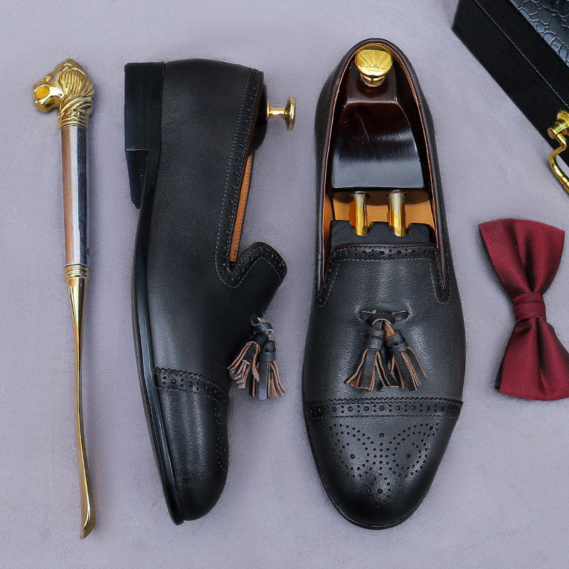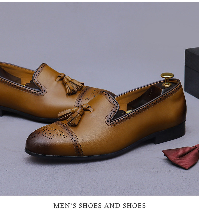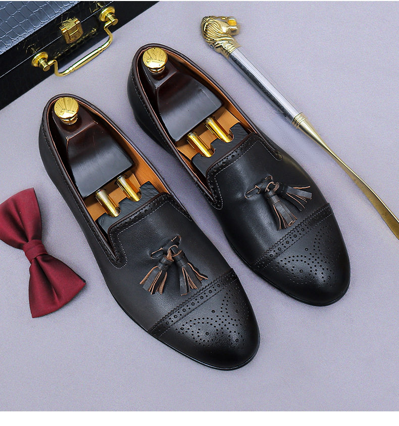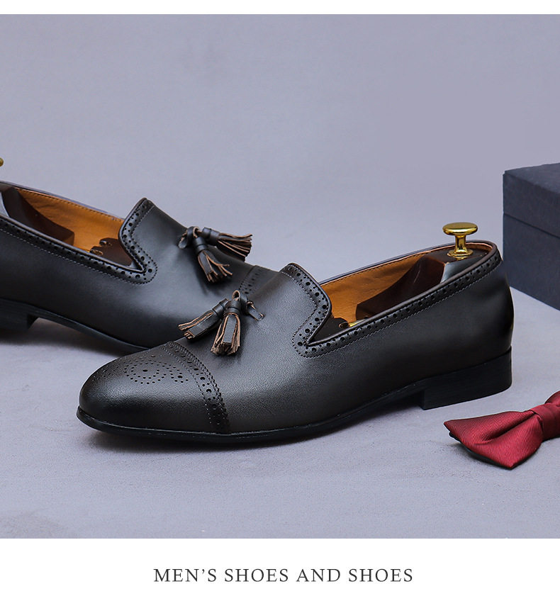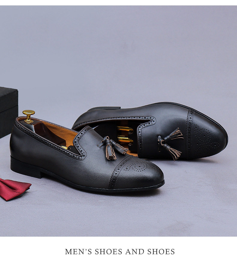 Giày Lười Nam Da Bò là sản phẩm thuộc danh mục Giày dép Nam, kiểu dáng Giày tây Nam lịch lãm. Sản phẩm được làm từ da bò bền đẹp, với thiết kế Brogue đục lỗ tinh tế và chi tiết tua rua thời trang. Giày da Nam có chiều cao đế khoảng 3cm, mang lại sự thoải mái khi di chuyển. Màu sắc Nâu và Đen dễ dàng phối đồ. Đây là lựa chọn tuyệt vời trong dòng Giày tây Nam cho các quý ông yêu thích phong cách cổ điển. | Tên sản phẩm: Giày Lười Nam Da Bò Brogue Tua Rua Chiều Cao Đế Khoảng 3cm Màu Nâu, Đen. | Mã sản phẩm: B7459 - Giá: 2120000đ. | Mã nhà sản xuất: ASTYCH - G05 | Danh mục sản phẩm: Giày tây Nam - Giày da Nam.Hình ảnh sản phẩm