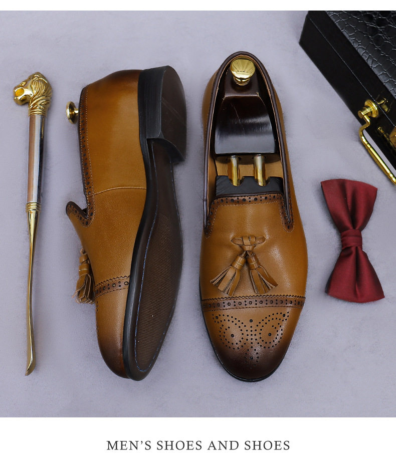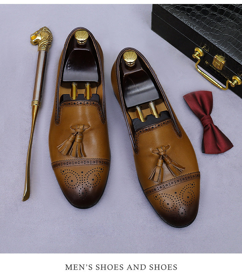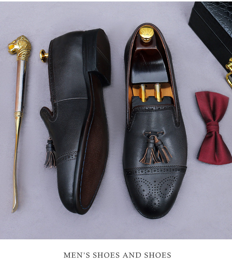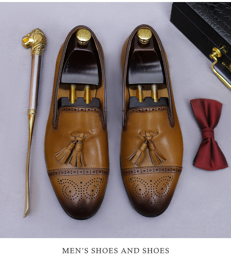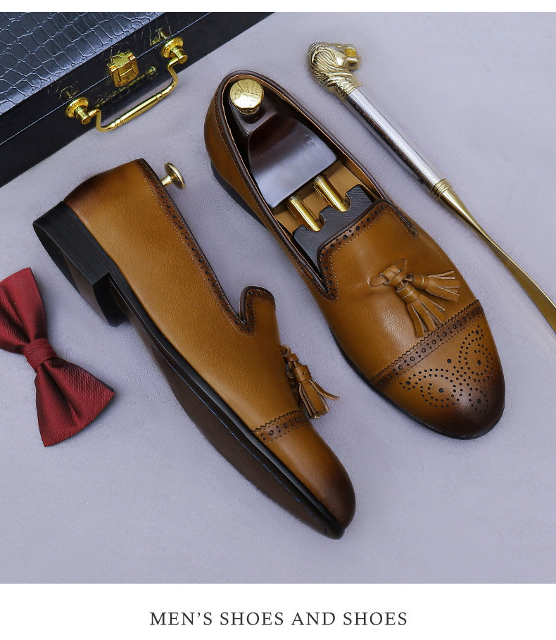 Giày Lười Nam Da Bò là sản phẩm thuộc danh mục Giày dép Nam, kiểu dáng Giày tây Nam lịch lãm. Sản phẩm được làm từ da bò bền đẹp, với thiết kế Brogue đục lỗ tinh tế và chi tiết tua rua thời trang. Giày da Nam có chiều cao đế khoảng 3cm, mang lại sự thoải mái khi di chuyển. Màu sắc Nâu và Đen dễ dàng phối đồ. Đây là lựa chọn tuyệt vời trong dòng Giày tây Nam cho các quý ông yêu thích phong cách cổ điển. | Tên sản phẩm: Giày Lười Nam Da Bò Brogue Tua Rua Chiều Cao Đế Khoảng 3cm Màu Nâu, Đen. | Mã sản phẩm: B7459 - Giá: 2120000đ. | Mã nhà sản xuất: ASTYCH - G05 | Danh mục sản phẩm: Giày tây Nam - Giày da Nam.Hình ảnh sản phẩm