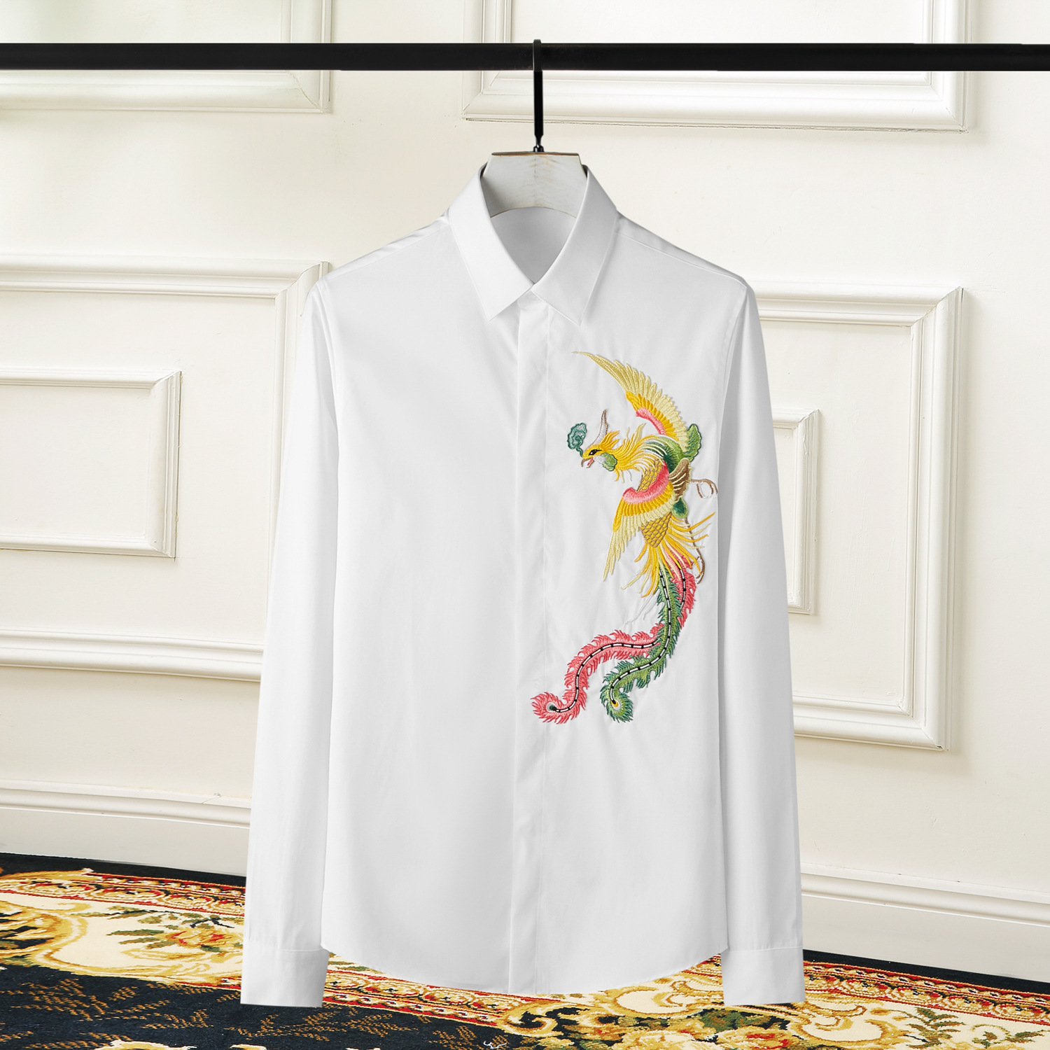 Áo Sơ Mi Nam Thêu Phượng Hoàng 3D Phong Cách Trung Hoa là một sản phẩm thời trang nam độc đáo, thuộc danh mục áo sơ mi nam dài tay. Chiếc áo này nổi bật với họa tiết thêu hình phượng hoàng 3D tinh xảo, mang đậm nét văn hóa phương Đông. Thiết kế áo sơ mi nam này mang đến vẻ ngoài lịch lãm, sang trọng và đầy cuốn hút. Áo sơ mi dài tay nam có nhiều màu sắc như đen, trắng, xanh navy, xanh dương. Áo được may tỉ mỉ trên chất liệu vải mềm mại, thoáng mát. Sản phẩm phù hợp để diện trong nhiều dịp khác nhau, từ công sở đến các sự kiện đặc biệt, giúp bạn tự tin thể hiện phong cách cá nhân. | Tên sản phẩm: Áo Sơ Mi Nam Thêu Phượng Hoàng 3D Phong Cách Trung Hoa. | Mã sản phẩm: B7598 - Giá: 2290000đ. | Mã nhà sản xuất: SHDAP - G05 | Danh mục sản phẩm: Áo sơ mi Nam - Áo sơ mi dài tay Nam.Hình ảnh sản phẩm