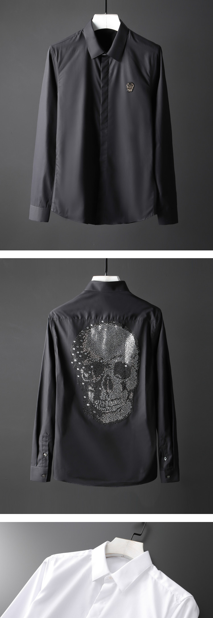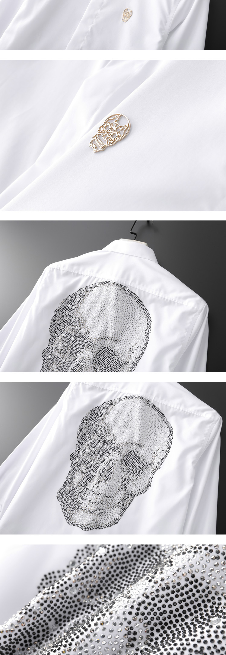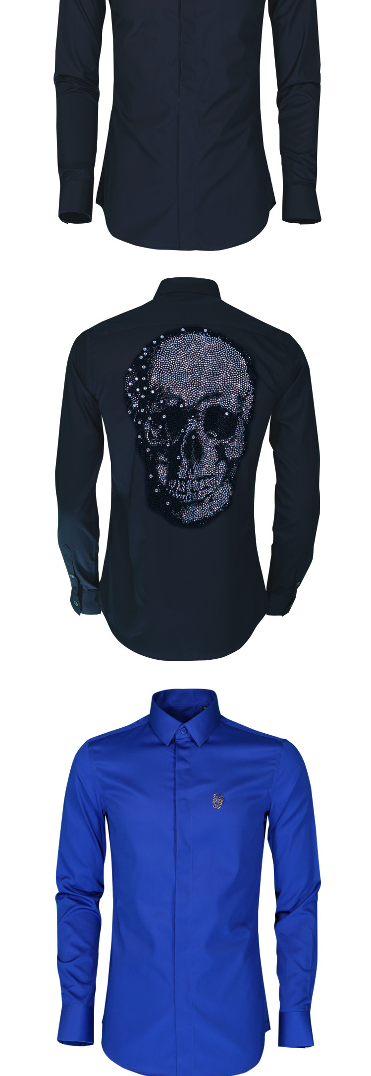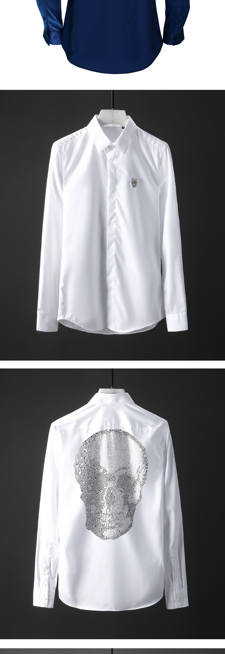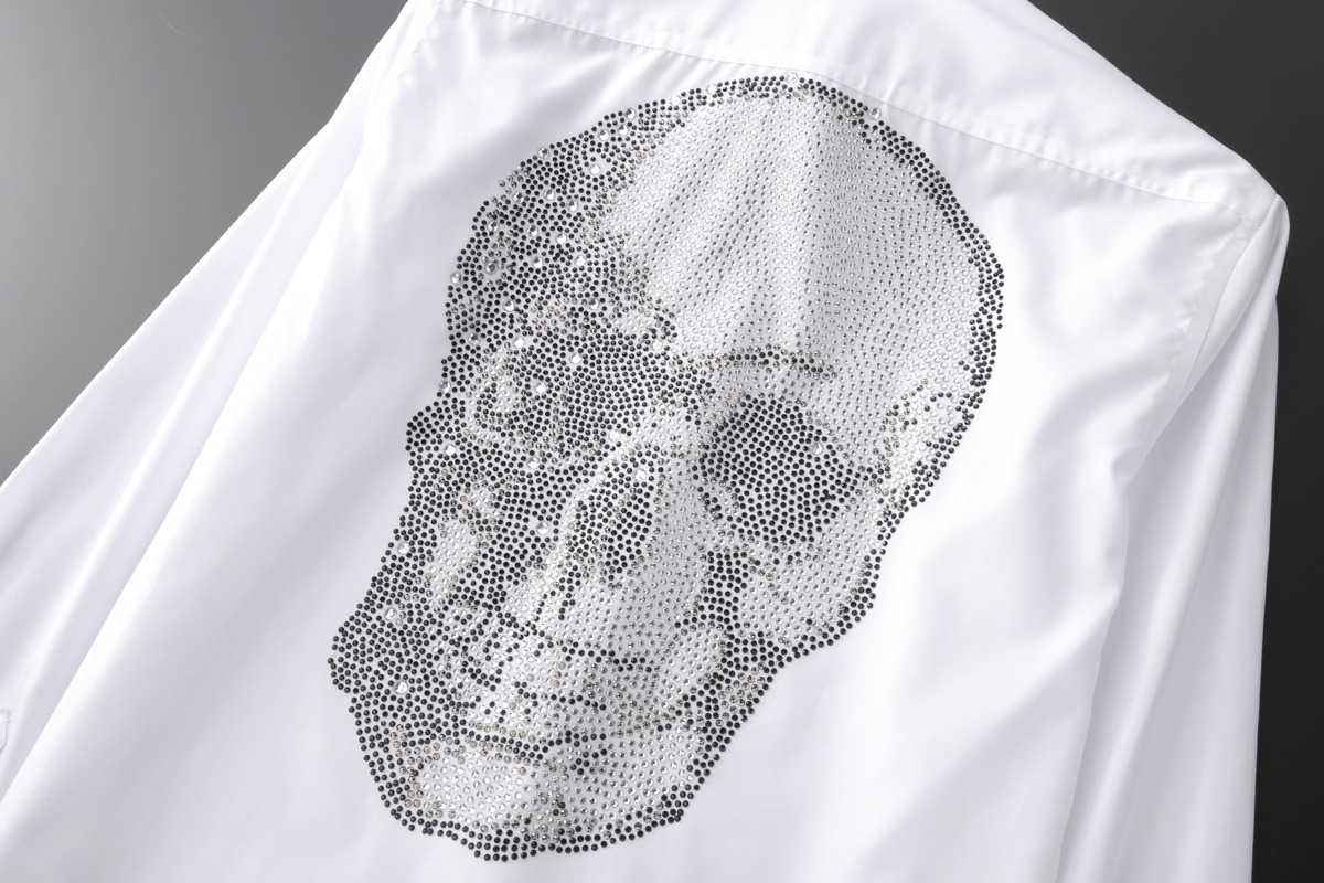 Áo sơ mi nam dáng ôm tay dài là một sản phẩm thời trang nam độc đáo với thiết kế ấn tượng. Áo sơ mi nam này có điểm nhấn là hình đầu lâu đính đá tỉ mỉ phía sau lưng. Chất liệu vải mềm mại, thoáng mát, form dáng ôm vừa vặn tôn lên vẻ lịch lãm. Áo sơ mi dài tay nam này có thể kết hợp với quần âu hoặc quần jeans để tạo nên phong cách riêng. Đây là lựa chọn hoàn hảo cho những ai yêu thích sự phá cách và nổi bật trong phong cách thời trang nam. | Tên sản phẩm: Áo Sơ Mi Nam Dáng Ôm Tay Dài Đính Đá Hình Đầu Lâu Màu Trắng, Đen, Xanh Dương. | Mã sản phẩm: B7650 - Giá: 2190000đ. | Mã nhà sản xuất: SHDAP - G05 | Danh mục sản phẩm: Áo sơ mi Nam - Áo sơ mi dài tay Nam.Hình ảnh sản phẩm
