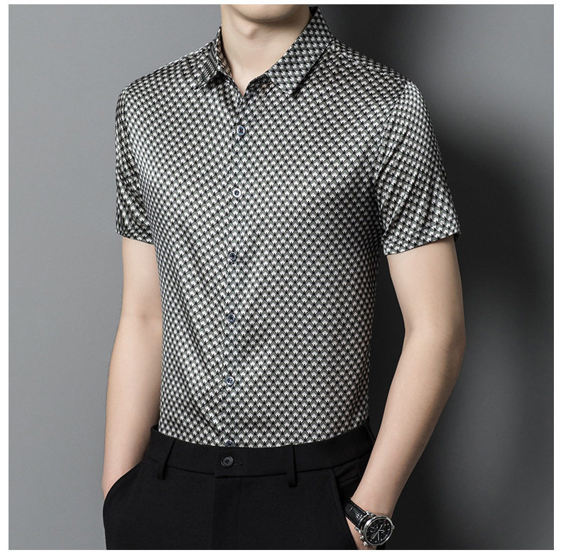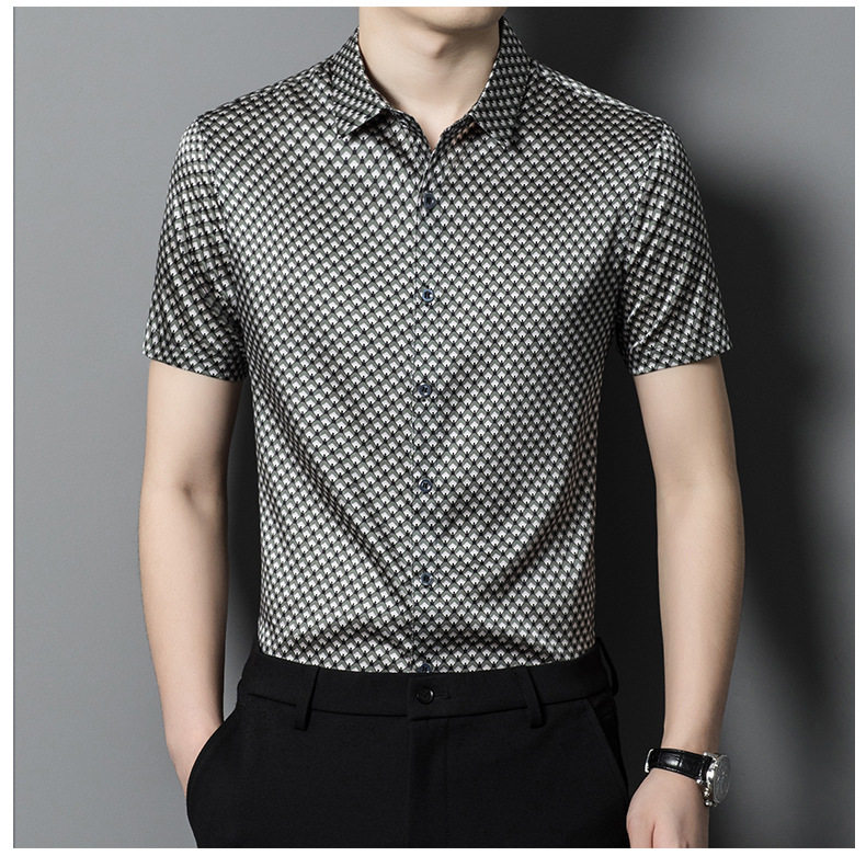 Áo Sơ Mi Tay Ngắn Nam Lụa Tằm là lựa chọn hoàn hảo cho mùa hè, thuộc bộ sưu tập thời trang Nam với thiết kế áo sơ mi Nam ngắn tay trẻ trung. Chất liệu lụa tằm cao cấp mang đến cảm giác mỏng nhẹ và thoáng mát. Chiếc áo sơ mi tay ngắn nam này có kiểu dáng rộng rãi, thoải mái, phù hợp cho cả trung niên và thanh niên. Họa tiết độc đáo cùng màu sắc trung tính như xám, trắng, đen dễ dàng phối đồ. Áo thích hợp mặc đi làm, đi chơi, mang đến phong cách lịch sự và thoải mái. | Tên sản phẩm: Áo Sơ Mi Tay Ngắn Nam Lụa Tằm Cao Cấp Mỏng Nhẹ Thoáng Mát Màu Xám, Trắng, Đen. | Mã sản phẩm: B7999 - Giá: 2680000đ. | Mã nhà sản xuất: TOREGS - G06 | Danh mục sản phẩm: Áo sơ mi Nam - Áo sơ mi ngắn tay Nam.Hình ảnh sản phẩm