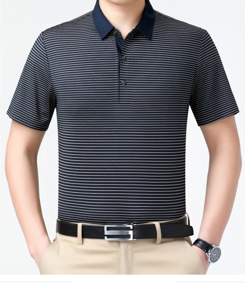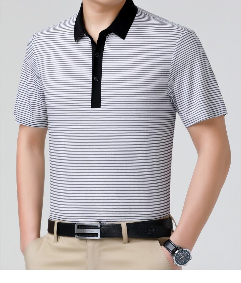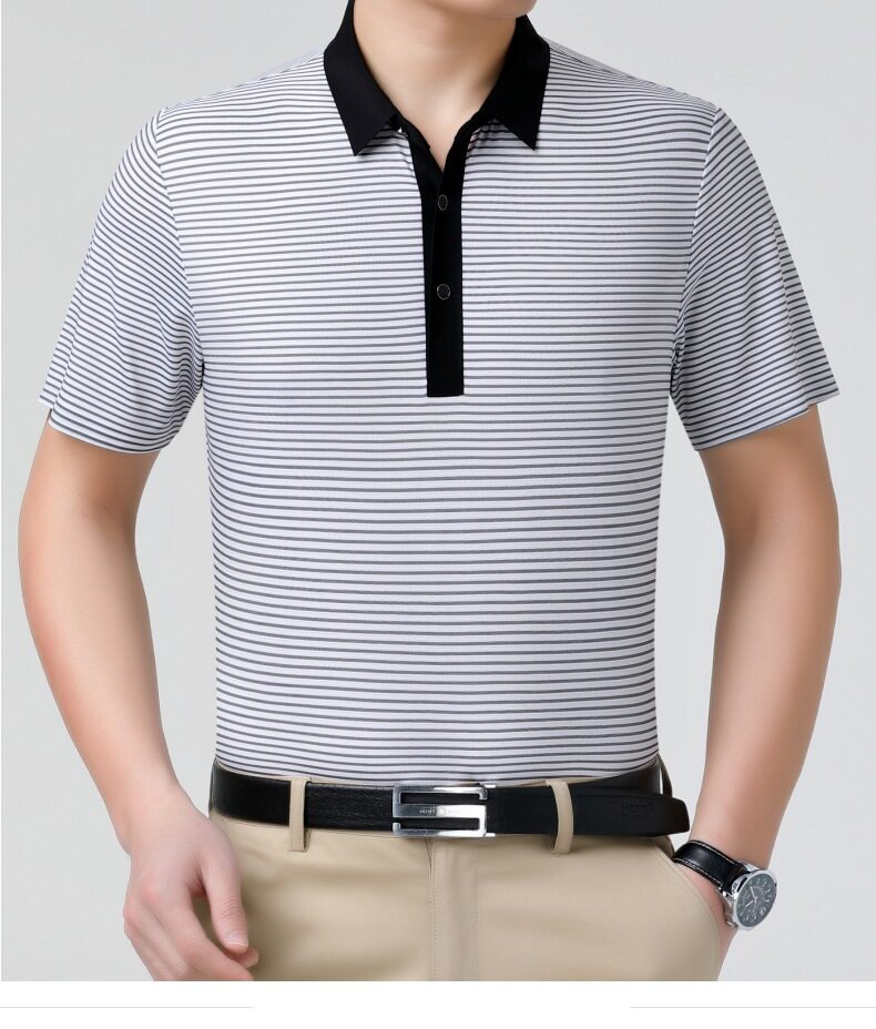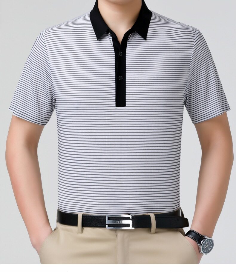 Áo Polo Nam Trung Niên Lụa Tằm là lựa chọn hoàn hảo trong danh mục Thời trang Nam, đặc biệt là Áo Nam dành cho các quý ông. Sản phẩm thuộc dòng Áo Polo Nam, được làm từ chất liệu lụa tằm cao cấp, mềm mại và thoáng khí. Thiết kế áo đơn giản, lịch sự với các đường kẻ sọc tinh tế. Áo có các màu xám, đen, trắng dễ phối đồ. Với chất liệu lụa tằm, chiếc áo polo này mang lại sự thoải mái, mát mẻ trong mùa hè, đồng thời thể hiện phong cách lịch lãm, sang trọng. | Tên sản phẩm: Áo Polo Nam Trung Niên Lụa Tằm Mềm Mát Thoáng Khí Màu Xám, Đen, Trắng. | Mã sản phẩm: B9333 - Giá: 1810000đ. | Mã nhà sản xuất: SHRYCT - G05 | Danh mục sản phẩm: Áo Nam - Áo Polo Nam.Hình ảnh sản phẩm