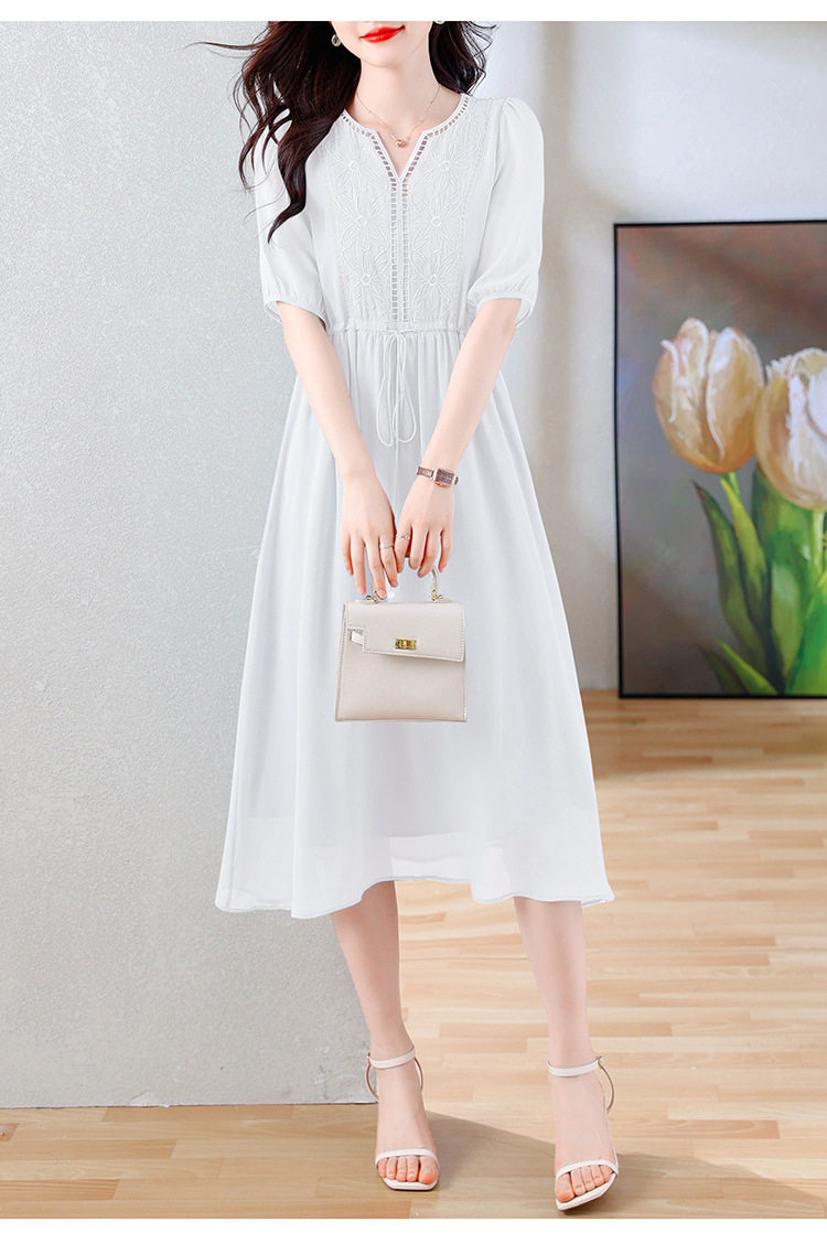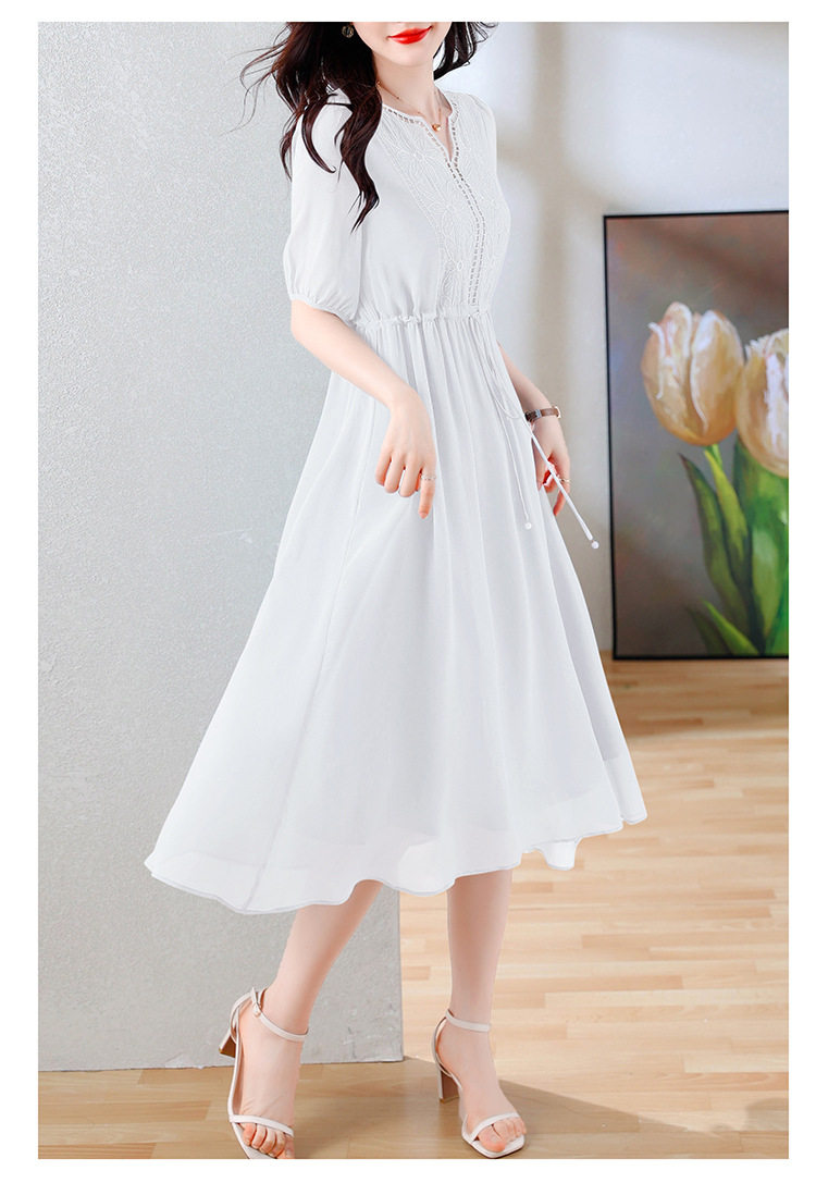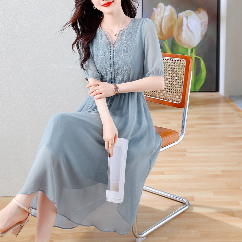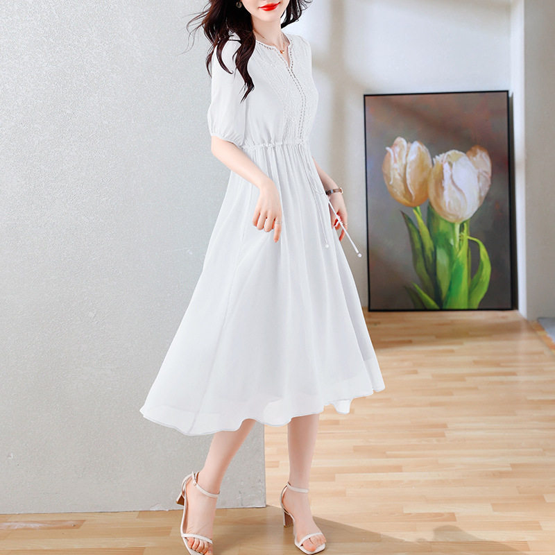 Váy Lụa Tằm Tơ Nữ dáng dài là sản phẩm thuộc danh mục Thời trang Nữ, kiểu dáng Váy đầm Nữ thanh lịch. Chiếc Váy liền thân Nữ này được may từ chất liệu lụa tằm tơ cao cấp, mềm mại. Thiết kế dáng dài thắt eo giúp tôn dáng, mang đến vẻ đẹp duyên dáng, nữ tính. Váy có các màu sắc trang nhã như trắng, đen, xanh. Đây là lựa chọn lý tưởng cho các quý cô yêu thích phong cách thời trang nữ tính, sang trọng và quý phái. Váy lụa tằm tơ phù hợp cho nhiều dịp khác nhau, từ đi làm đến dạo phố. | Tên sản phẩm: Váy Lụa Tằm Tơ Nữ Dáng Dài Thắt Eo Thanh Lịch Màu Trắng, Đen, Xanh. | Mã sản phẩm: B9462 - Giá: 1900000đ. | Mã nhà sản xuất: SHRYCT - G05 | Danh mục sản phẩm: Váy đầm Nữ - Váy liền thân Nữ.Hình ảnh sản phẩm