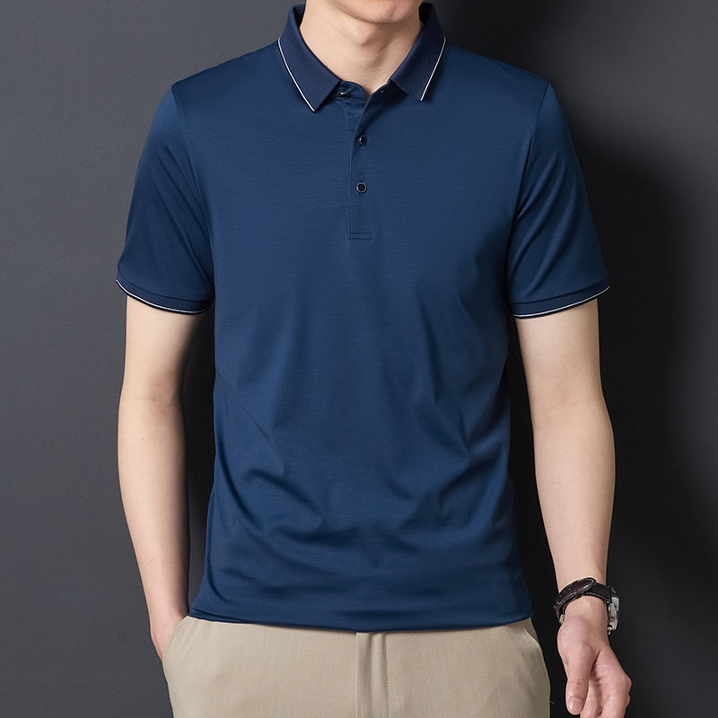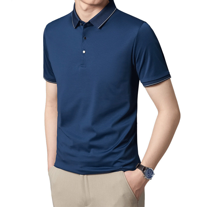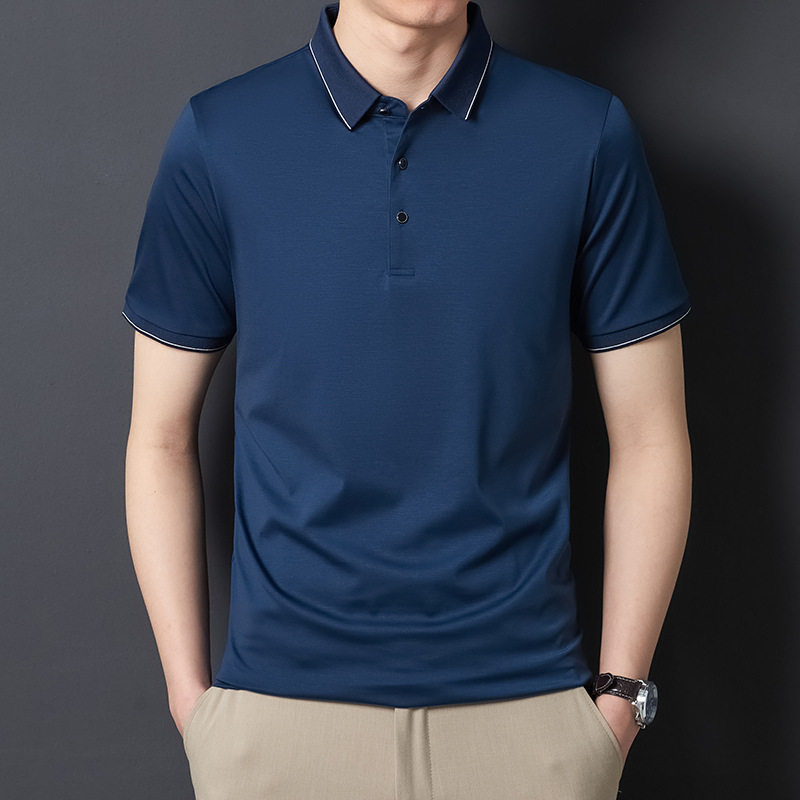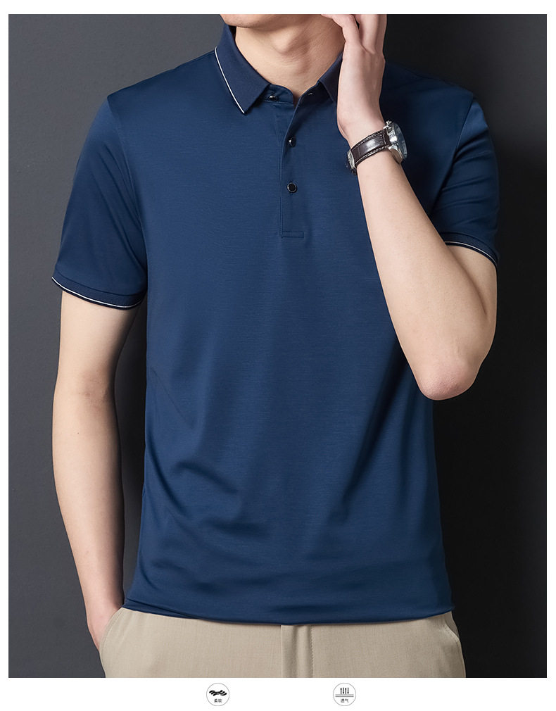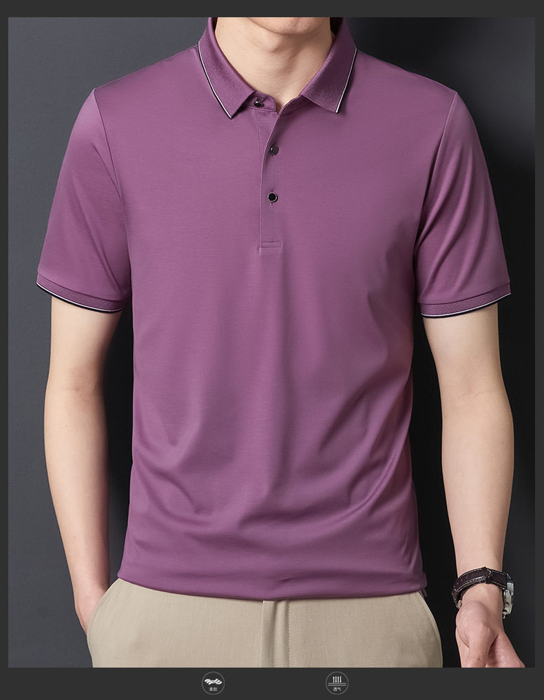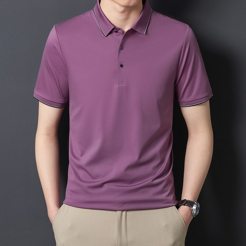 Áo Thun Polo Nam Tay Ngắn Lụa Tằm là sản phẩm thời trang nam cao cấp, thuộc dòng áo polo nam. Với chất liệu lụa tằm, áo mang lại cảm giác thoải mái, thoáng mát trong mùa hè. Thiết kế form rộng phù hợp với nhiều dáng người trung niên. Áo có đặc tính chống nhăn, dễ dàng bảo quản và không cần là ủi. Màu sắc tím và xanh navy trang nhã, lịch sự. Đây là lựa chọn hoàn hảo cho các quý ông yêu thích sự thoải mái và sang trọng trong phong cách thời trang áo nam. | Tên sản phẩm: Áo Thun Polo Nam Tay Ngắn Lụa Tằm Cao Cấp Form Rộng Chống Nhăn Màu Tím, Xanh Navy. | Mã sản phẩm: C0296 - Giá: 2290000đ. | Mã nhà sản xuất: SHRYCT - G05 | Danh mục sản phẩm: Áo Nam - Áo Polo Nam.Hình ảnh sản phẩm
