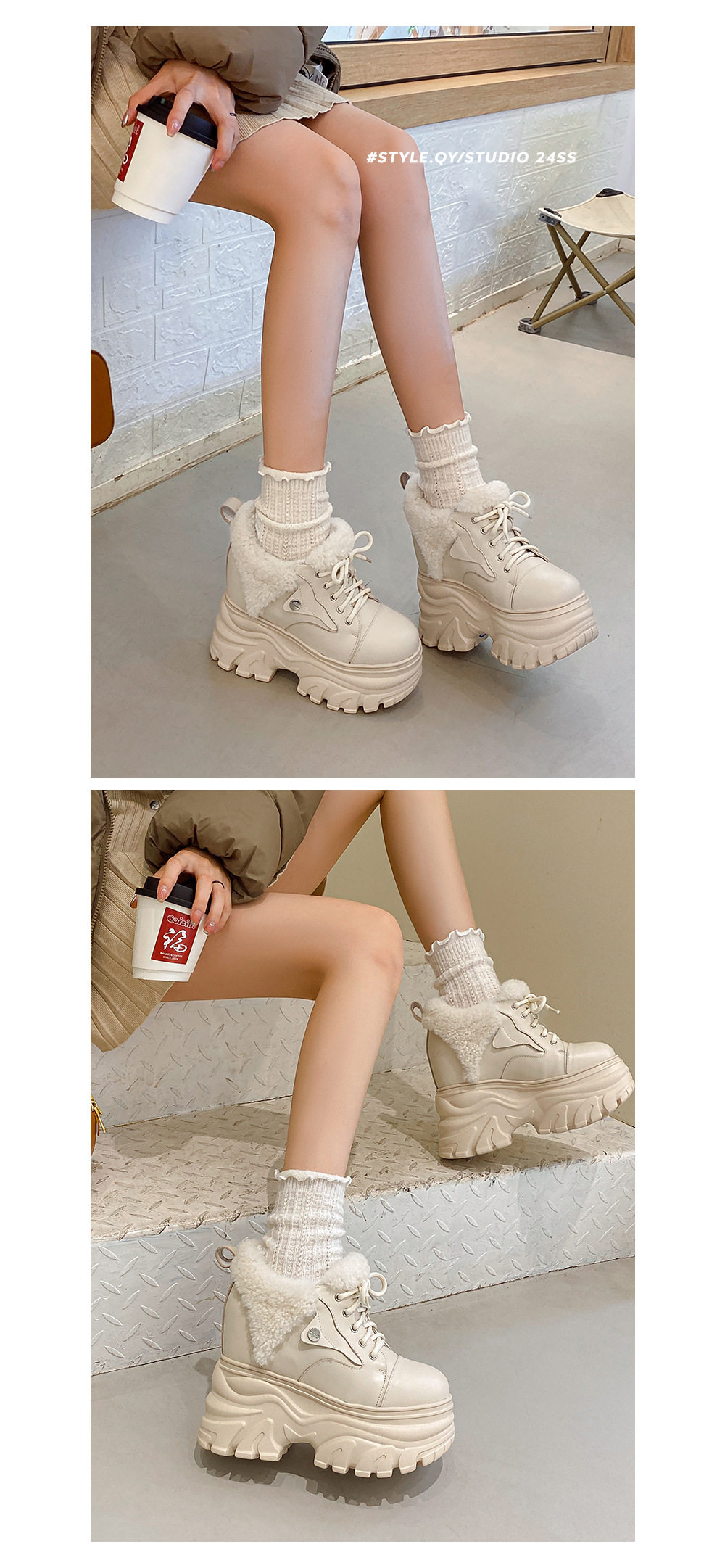 Giày Bánh Mì Nữ Da Mềm Lót Lông Cừu là sản phẩm thuộc danh mục Giày dép Nữ, kiểu dáng giày sneaker nữ bánh mì. Sản phẩm được làm từ da mềm mại, lót lông cừu ấm áp, đế bánh mì cao khoảng 7cm. Giày sneaker nữ có thiết kế năng động, trẻ trung, phù hợp với nhiều phong cách thời trang. Đặc biệt, lớp lót lông cừu giúp giữ ấm cho đôi chân trong mùa đông. Sản phẩm giày bánh mì nữ này có hai màu Kem và Đen dễ phối đồ. Đây là lựa chọn hoàn hảo cho các bạn nữ yêu thích sự thoải mái và phong cách. | Tên sản phẩm: Giày Bánh Mì Nữ Da Mềm Lót Lông Cừu Chiều Cao Đế Khoảng 7cm Màu Kem, Đen. | Mã sản phẩm: C1284 - Giá: 3870000đ. | Mã nhà sản xuất: QIDNG - G06 | Danh mục sản phẩm: Giày Sneaker Nữ - Giày bánh mì Nữ.Hình ảnh sản phẩm
