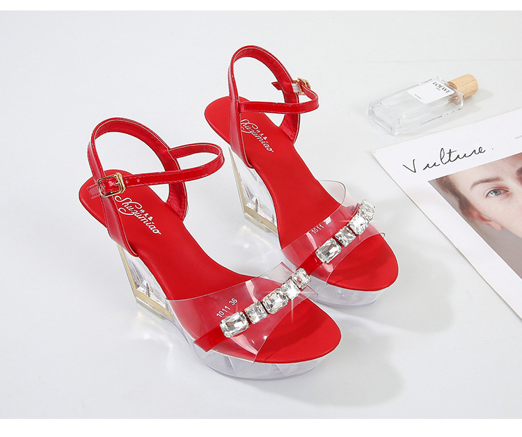 Giày Sandal Cao Gót Nữ Quai Trong Suốt Đính Đá Gót Cao 10cm là một sản phẩm thuộc Giày dép Nữ, nằm trong bộ sưu tập giày sandal cao gót nữ. Thiết kế sandal đính đá nữ này nổi bật với phần quai trong suốt tạo hiệu ứng thị giác độc đáo, kết hợp chi tiết đính đá lấp lánh, mang đến vẻ ngoài sang trọng và quyến rũ. Gót giày cao 10cm giúp tôn dáng và tạo sự tự tin cho người mang. Sản phẩm có nhiều màu sắc như đen, đỏ, bạc, tím... Đây là lựa chọn hoàn hảo để nâng tầm phong cách thời trang của bạn. Mẫu giày sandal cao gót này phù hợp với nhiều dịp khác nhau, từ các buổi tiệc tùng đến các sự kiện đặc biệt. | Tên sản phẩm: Giày Sandal Cao Gót Nữ Quai Trong Suốt Đính Đá Gót Cao 10cm Màu Đen, Đỏ, Bạc, Tím.... | Mã sản phẩm: D7470 - Giá: 1060000đ. | Mã nhà sản xuất: JIENNG - G03 | Danh mục sản phẩm: sandal đính đá nữ - giày sandal cao gót nữ.Hình ảnh sản phẩm