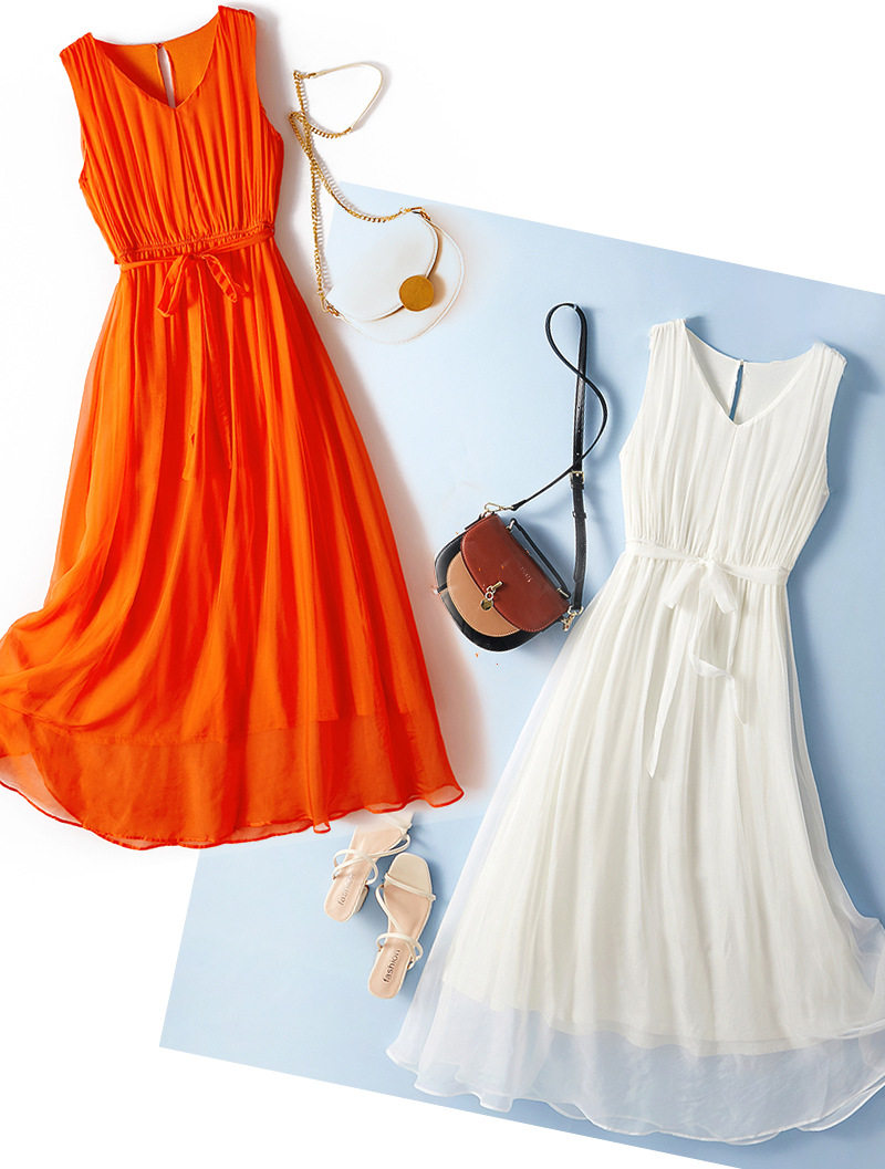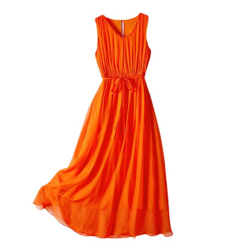 Váy Maxi Lụa Tơ Tằm là sản phẩm thời trang nữ lý tưởng cho mùa hè, đặc biệt phù hợp cho những chuyến đi biển. Chiếc váy thuộc danh mục Váy đầm Nữ, kiểu dáng maxi thướt tha. Chất liệu lụa tơ tằm cao cấp, mềm mại, thoáng mát mang đến cảm giác thoải mái khi mặc. Thiết kế thắt eo tôn dáng, màu sắc tươi sáng với hai màu cam và trắng. Váy maxi Nữ này sẽ giúp bạn nổi bật và tự tin hơn. Đây là lựa chọn tuyệt vời cho những cô nàng yêu thích phong cách đi biển. | Tên sản phẩm: Váy Maxi Lụa Tơ Tằm Đi Biển Mùa Hè Thắt Eo Màu Cam, Trắng. | Mã sản phẩm: H8208 - Giá: 2160000đ. | Mã nhà sản xuất: SHDTR - G05 | Danh mục sản phẩm: Váy đầm Nữ - Váy maxi Nữ.Hình ảnh sản phẩm