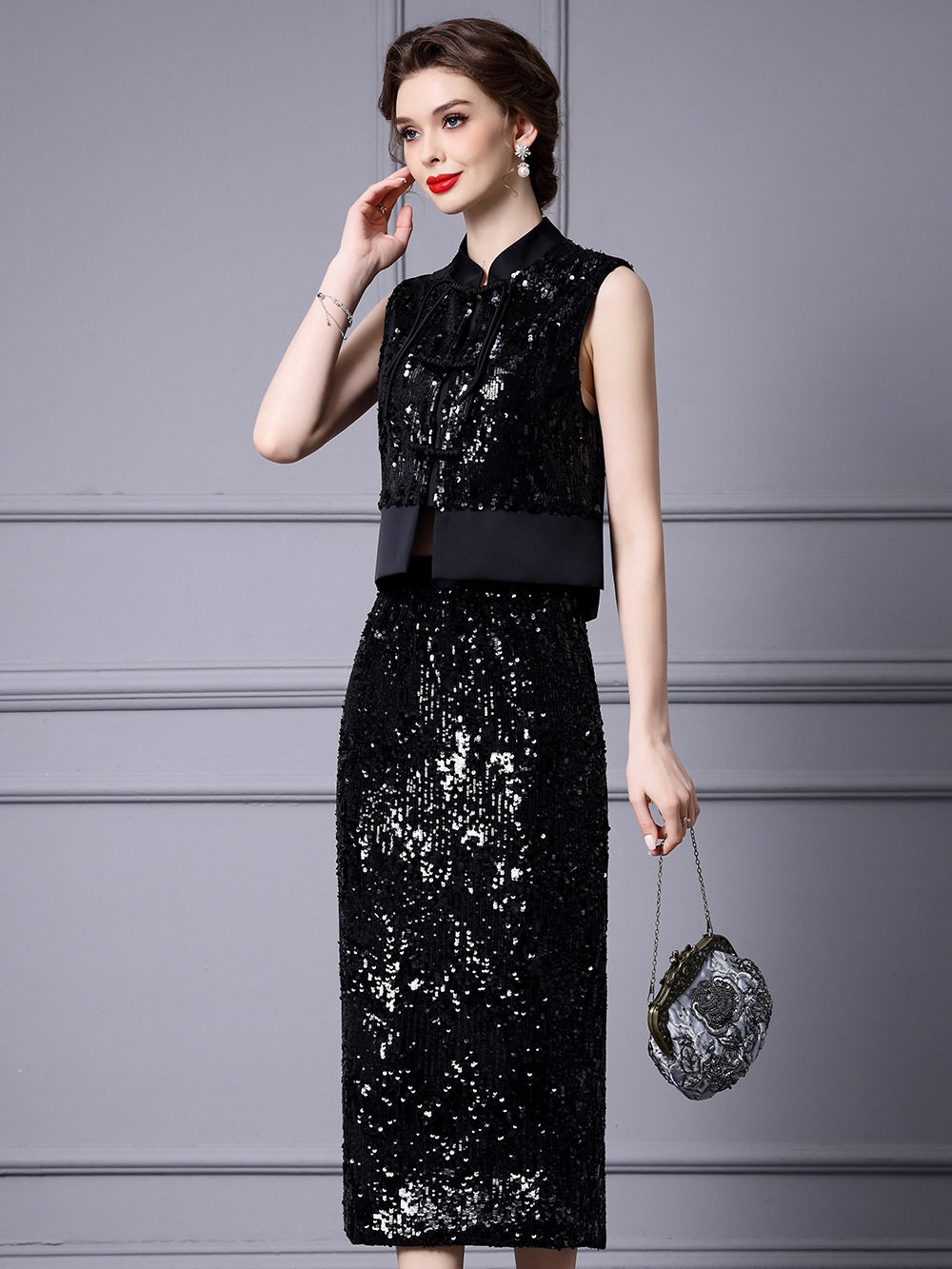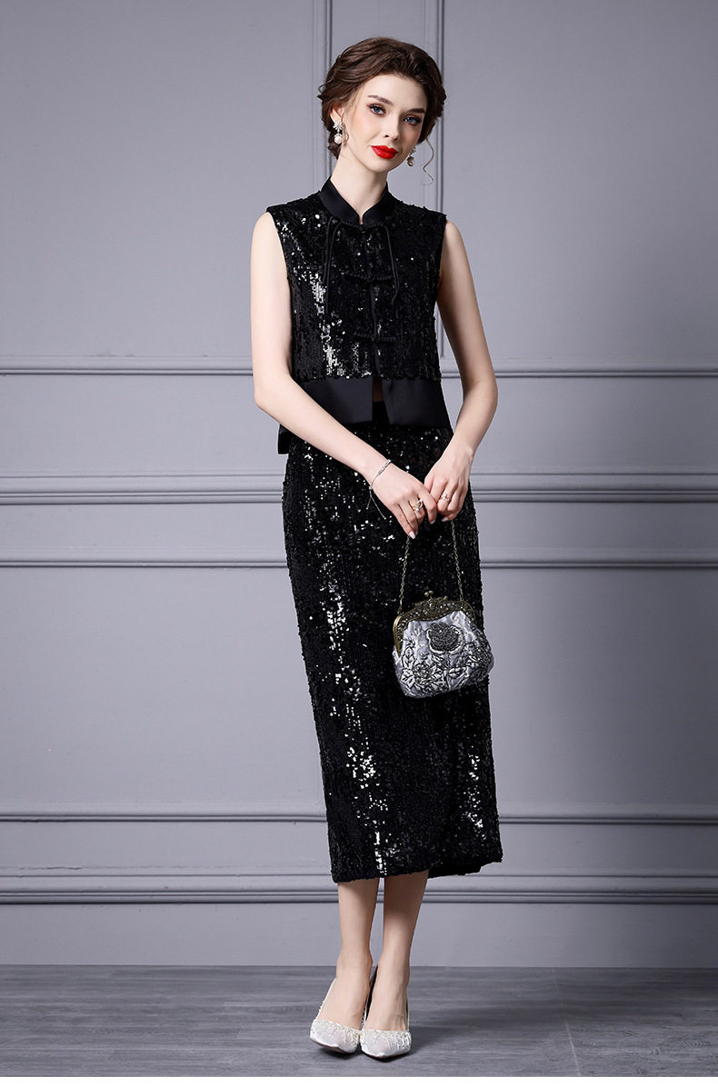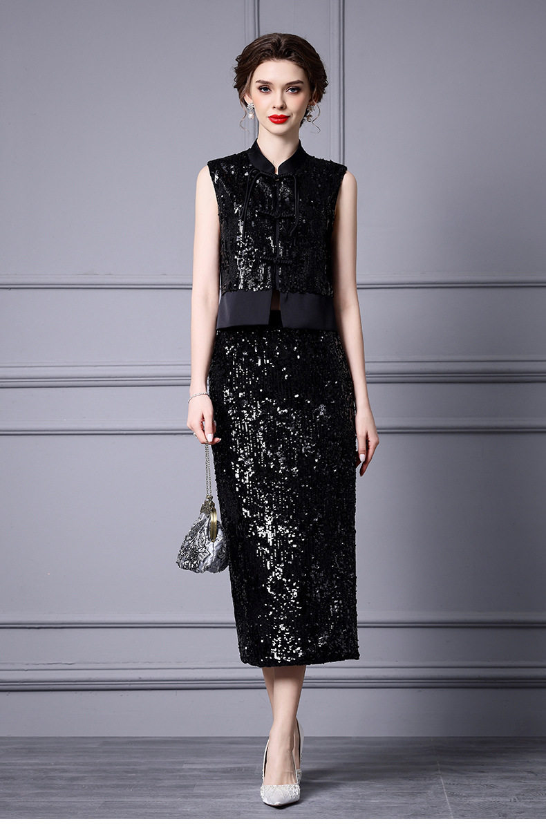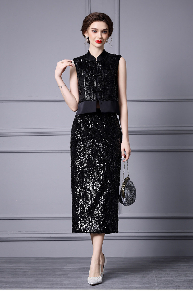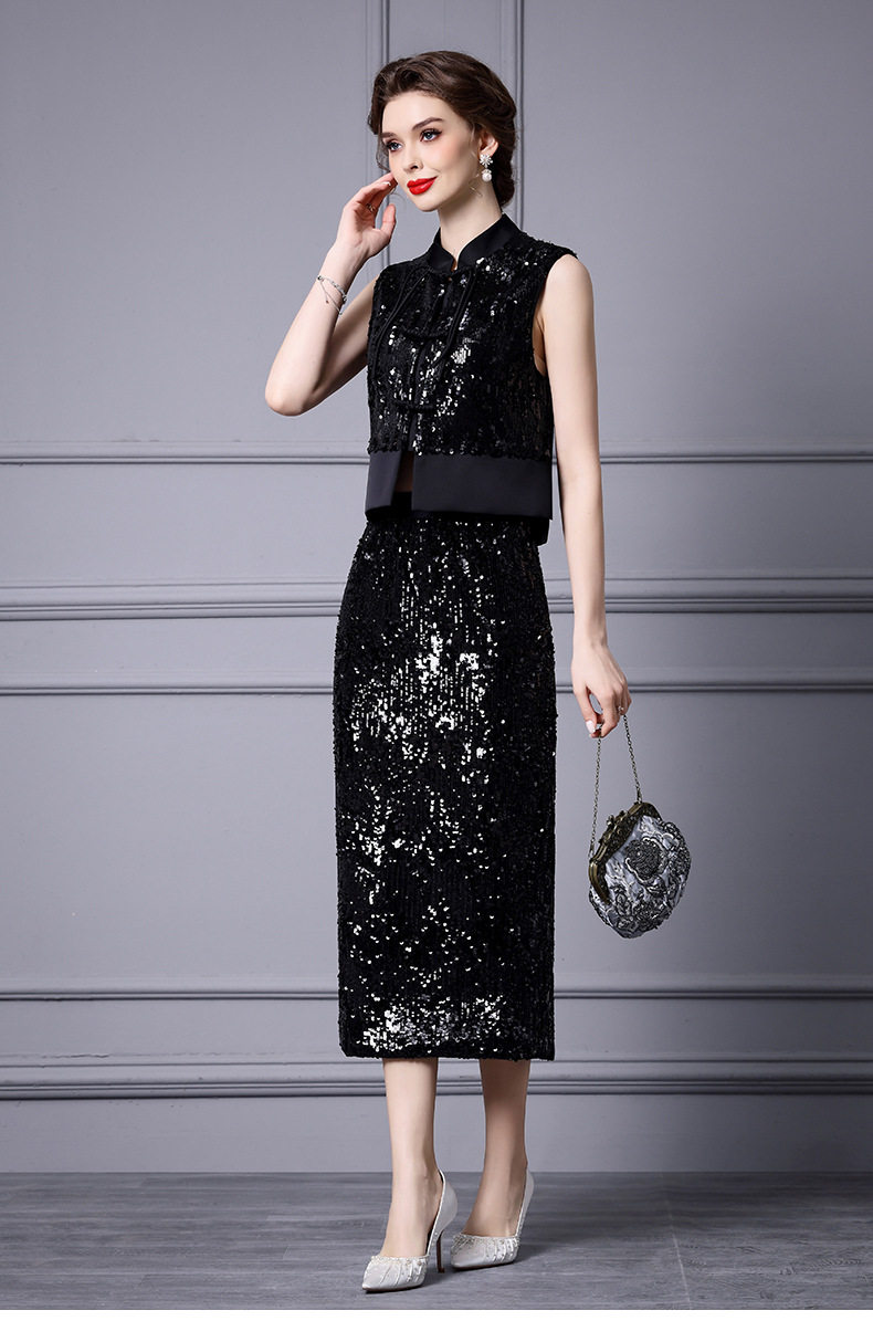 Set Áo Gile Lệch Tà Khuy Nút Quốc Dân Và Chân Váy Bút Chì Đính Kim Sa Lấp Lánh Phong Cách Chiết Trung là một sản phẩm thuộc danh mục Thời trang Nữ, kiểu dáng Set bộ Nữ. Set áo và chân váy Nữ này mang đến vẻ đẹp thanh lịch, sang trọng và đậm chất riêng cho phái đẹp. Áo gile được thiết kế lệch tà độc đáo, kết hợp với hàng khuy nút quốc dân tạo điểm nhấn ấn tượng. Chân váy bút chì ôm sát khoe trọn đường cong quyến rũ, được đính kim sa lấp lánh tạo hiệu ứng bắt mắt. Màu đen sang trọng, quý phái. Set đồ này sẽ là lựa chọn hoàn hảo để bạn tỏa sáng trong mọi dịp. | Tên sản phẩm: Set Áo Gile Lệch Tà Khuy Nút Quốc Dân Và Chân Váy Bút Chì Đính Kim Sa Lấp Lánh Phong Cách Chiết Trung Màu Đen. | Mã sản phẩm: K2903 - Giá: 2360000đ. | Mã nhà sản xuất: SHDAP - G05 | Danh mục sản phẩm: Set bộ Nữ - Set áo và chân váy Nữ.Hình ảnh sản phẩm