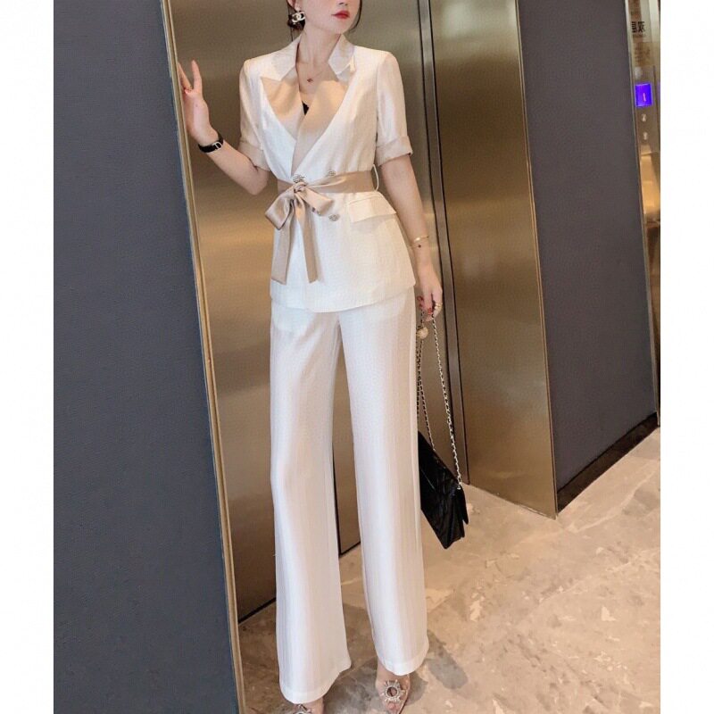 Bộ Áo Blazer Tay Ngắn Quần Ống Rộng là sản phẩm thời trang Nữ thuộc danh mục Bộ quần áo Nữ, đặc biệt là Bộ Blazer Nữ phong cách Hàn Quốc. Thiết kế dáng ôm eo tôn dáng, áo blazer tay ngắn kết hợp cùng quần ống rộng tạo vẻ thanh lịch, hiện đại. Bộ Blazer Nữ này phù hợp cho nhiều dịp, từ công sở đến dạo phố. Chất liệu thoáng mát, thoải mái khi mặc. Màu trắng kem và nâu nhạt trang nhã, dễ phối đồ. Đây là lựa chọn lý tưởng cho những cô nàng yêu thích phong cách thời trang thanh lịch và trẻ trung. | Tên sản phẩm: Bộ Áo Blazer Tay Ngắn Quần Ống Rộng Dáng Ôm Eo Phong Cách Hàn Quốc Màu Trắng, Nâu. | Mã sản phẩm: K3185 - Giá: 1910000đ. | Mã nhà sản xuất: CHTYAI - G05 | Danh mục sản phẩm: Bộ quần áo Nữ - Bộ Blazer Nữ.Hình ảnh sản phẩm