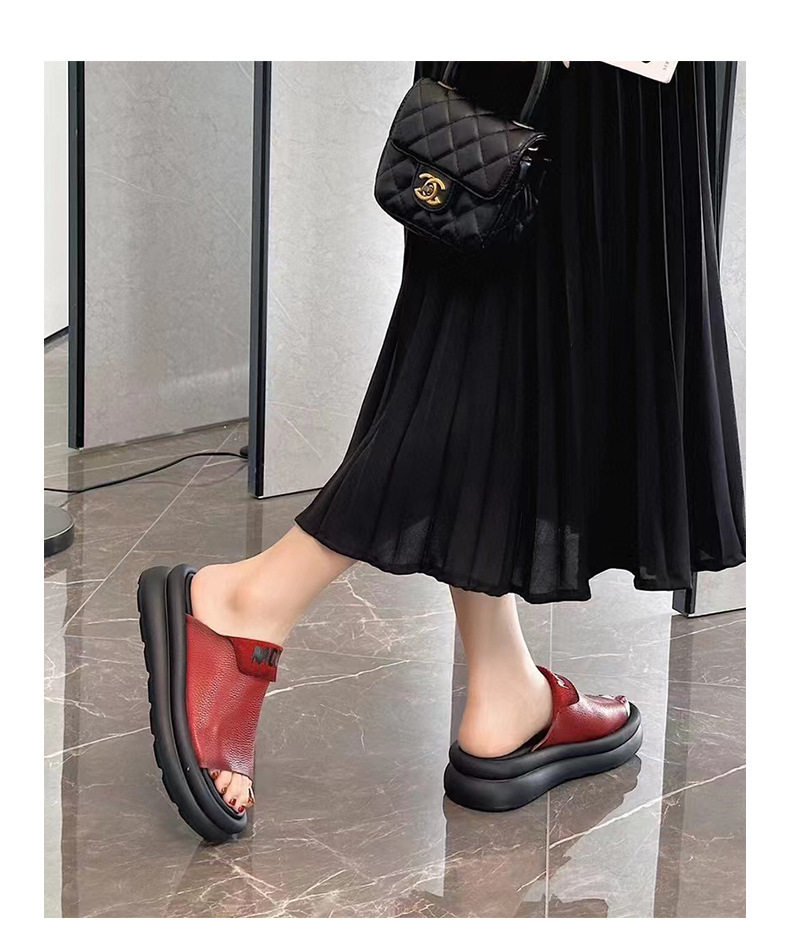 Dép Sandal Nữ Da Bò Quai Ngang Đế Cao 4cm - 5cm là sản phẩm thuộc danh mục Giày dép Nữ với phân loại dép sandal nữ. Sản phẩm được làm từ chất liệu da bò cao cấp, có đế cao khoảng 4cm - 5cm. Dép sandal quai ngang nữ này thiết kế quai ngang đơn giản, trẻ trung. Màu sắc đa dạng Đen, Kem, Đỏ phù hợp nhiều phong cách. Đây là lựa chọn lý tưởng trong phân khúc dép sandal nữ cho nữ giới yêu thích sự thoải mái và năng động. Chất liệu da bò mềm mại, bền đẹp. | Tên sản phẩm: Dép Sandal Nữ Da Bò Quai Ngang Đế Cao 4cm - 5cm Màu Đen, Kem, Đỏ. | Mã sản phẩm: K4246 - Giá: 1810000đ. | Mã nhà sản xuất: WEDSH - G05 | Danh mục sản phẩm: sandal quai ngang nữ - dép sandal nữ.Hình ảnh sản phẩm