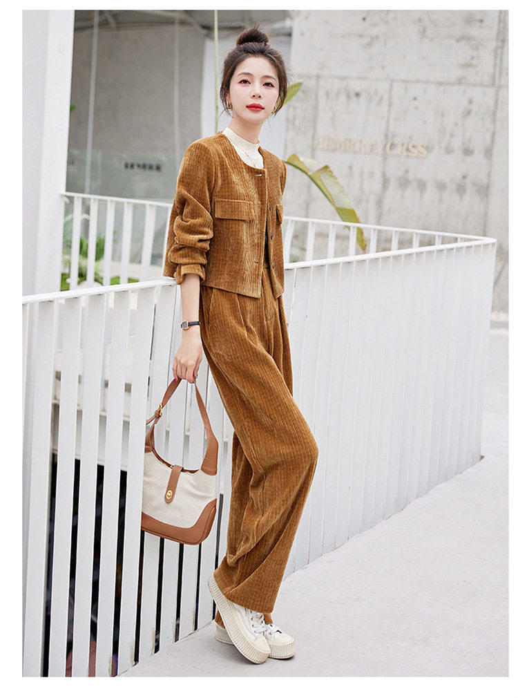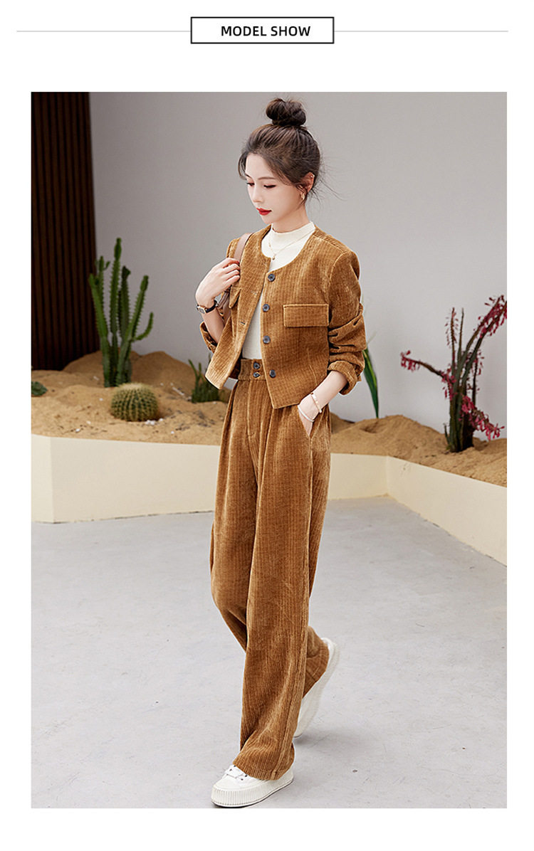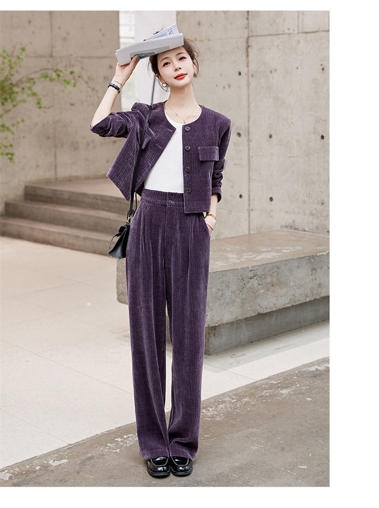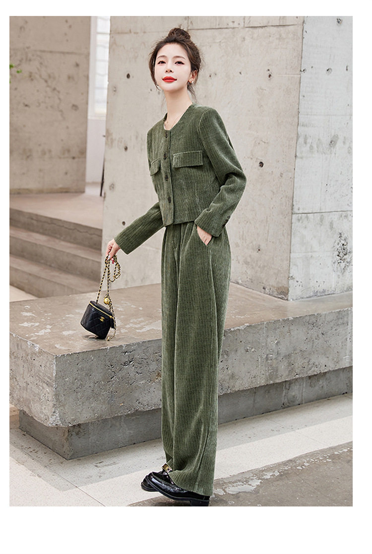 Set bộ quần áo nữ áo khoác quần ống rộng là sản phẩm thuộc danh mục thời trang nữ, với kiểu dáng set đồ nữ thanh lịch. Thiết kế áo khoác dáng ngắn kết hợp cùng quần ống rộng tạo nên vẻ ngoài thời trang và chuyên nghiệp. Chất liệu vải mềm mại, thoáng mát mang lại sự thoải mái khi mặc. Set đồ nữ này có nhiều màu sắc như nâu, đen, xanh lá và tím. Đây là lựa chọn hoàn hảo cho những cô nàng yêu thích phong cách thanh lịch và tinh tế. | Tên sản phẩm: Set Bộ Quần Áo Nữ Áo Khoác Quần Ống Rộng Phong Cách Thanh Lịch Màu Nâu, Đen, Xanh Lá, Tím. | Mã sản phẩm: L1065 - Giá: 1970000đ. | Mã nhà sản xuất: WODTH - G05 | Danh mục sản phẩm: Quần áo Nữ - Set đồ Nữ.Hình ảnh sản phẩm