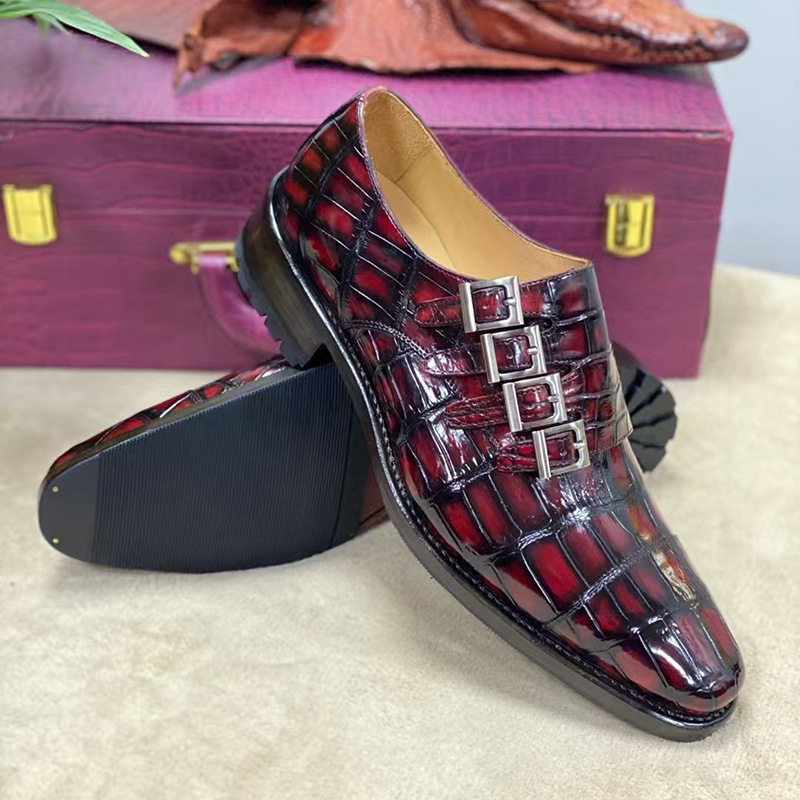 Giày Tây Monk Strap Nam Da Cá Sấu là một sản phẩm cao cấp thuộc danh mục Giày dép Nam, đặc biệt là dòng Giày tây Nam. Với chất liệu da cá sấu độc đáo, đôi giày này mang đến vẻ ngoài sang trọng và đẳng cấp. Thiết kế Monk Strap không dây cài tạo nên sự khác biệt và tiện lợi. Chiều cao đế khoảng 3cm giúp tôn dáng và tạo sự thoải mái khi di chuyển. Giày da Nam này có màu sắc chủ đạo là đỏ và đen, phù hợp với nhiều phong cách thời trang khác nhau. Đây là sự lựa chọn hoàn hảo cho những quý ông muốn thể hiện gu thẩm mỹ tinh tế và đẳng cấp. | Tên sản phẩm: Giày Tây Monk Strap Nam Da Cá Sấu Chiều Cao Đế Khoảng 3cm Màu Đỏ, Đen. | Mã sản phẩm: L1219 - Giá: 21280000đ. | Mã nhà sản xuất: GUDTH - G06 | Danh mục sản phẩm: Giày tây Nam - Giày da Nam.Hình ảnh sản phẩm