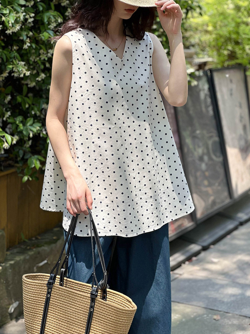 Áo sơ mi nữ không tay họa tiết chấm bi là sản phẩm thời trang nữ được yêu thích. Thiết kế áo sơ mi nữ với chất liệu vải lanh thoáng mát, form dáng rộng rãi giúp người mặc cảm thấy thoải mái, tự tin. Họa tiết chấm bi trên áo sơ mi tạo điểm nhấn trẻ trung, năng động. Áo sơ mi không tay phù hợp với nhiều phong cách khác nhau, dễ dàng phối đồ. Sản phẩm có màu trắng chủ đạo kết hợp với chấm bi đen, tạo nên sự hài hòa, thanh lịch. Đây là mẫu áo sơ mi lý tưởng cho mùa hè. | Tên sản phẩm: Áo Sơ Mi Nữ Không Tay Họa Tiết Chấm Bi Vải Lanh Form Rộng Màu Trắng, Đen. | Mã sản phẩm: L1592 - Giá: 830000đ. | Mã nhà sản xuất: HADUN - G03 | Danh mục sản phẩm: Áo Nữ - Áo sơ mi Nữ.Hình ảnh sản phẩm