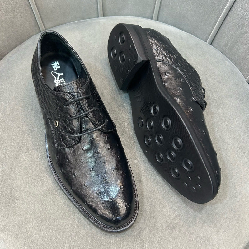 Giày tây buộc dây nam da đà điểu là sản phẩm thuộc danh mục giày dép nam, kiểu dáng giày tây nam lịch lãm. Sản phẩm có chất liệu da đà điểu độc đáo và cao cấp, phần đế cao khoảng 3cm, làm từ cao su bền bỉ, chống trơn trượt tốt. Mẫu giày da nam này có thiết kế ôm chân, màu đen sang trọng, phù hợp với nhiều dịp. Giày tây nam này có lớp lót mềm mại, mang đến sự thoải mái khi di chuyển. Đây là sự lựa chọn tuyệt vời cho các quý ông. | Tên sản phẩm: Giày Tây Buộc Dây Nam Da Đà Điểu Chiều Cao Đế Khoảng 3cm Màu Đen. | Mã sản phẩm: L2572 - Giá: 4720000đ. | Mã nhà sản xuất: GUREG - G06 | Danh mục sản phẩm: Giày tây Nam - Giày da Nam.Hình ảnh sản phẩm