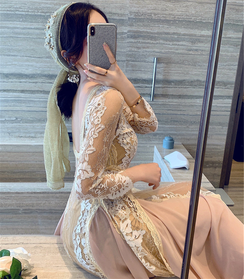 Váy Dài Nữ Ren Lưng Trần là sản phẩm thuộc danh mục Thời trang Nữ, kiểu dáng Váy đầm Nữ thanh lịch. Chiếc Váy dài Nữ này được thiết kế với phần ren tinh tế ở thân trên và tay áo, kết hợp phần lưng hở quyến rũ. Chất liệu mềm mại, thoáng mát, tạo cảm giác thoải mái khi mặc. Váy có màu be nhã nhặn, phù hợp nhiều hoàn cảnh khác nhau. Đặc biệt, sản phẩm đi kèm khăn trùm đầu đồng điệu, mang đến vẻ ngoài hoàn hảo cho phái đẹp. Đây là lựa chọn tuyệt vời cho những cô nàng yêu thích phong cách Pháp dịu dàng. | Tên sản phẩm: Váy Dài Nữ Ren Lưng Trần Hở Lưng Phong Cách Pháp Kèm Khăn Trùm Đầu Màu Be. | Mã sản phẩm: T4417 - Giá: 1190000đ. | Mã nhà sản xuất: GUDG - G04 | Danh mục sản phẩm: Váy đầm Nữ - Váy dài Nữ.Hình ảnh sản phẩm