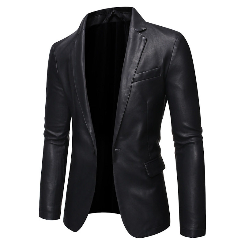 Áo Khoác Da PU Nam Dáng Ôm Phong Cách Hàn Quốc Màu Đen