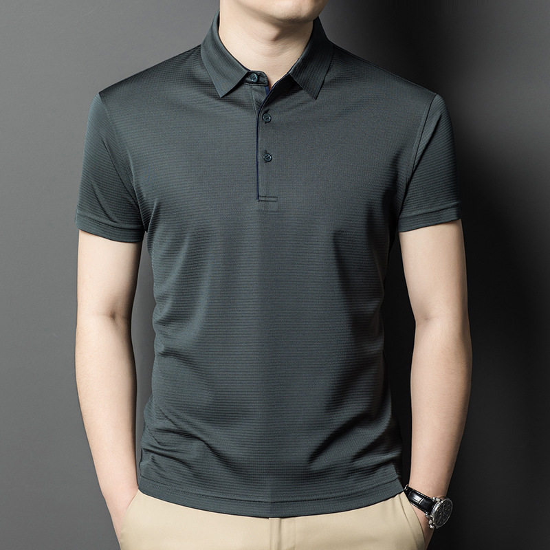 Áo Polo Nam Tay Ngắn桑蚕丝 Lụa Gân Khuy Cài Phong Cách Doanh Nhân Màu Trắng, Xanh Navy