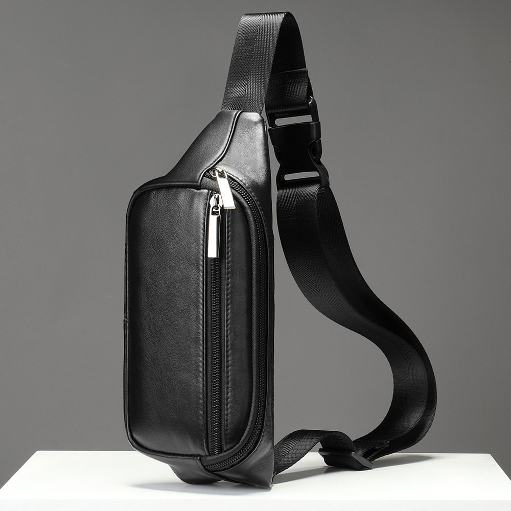 Túi Đeo Ngực/Đeo Chéo Nam Da Thật Chống Thấm Nước Thiết Kế Tối Giản Màu Đen