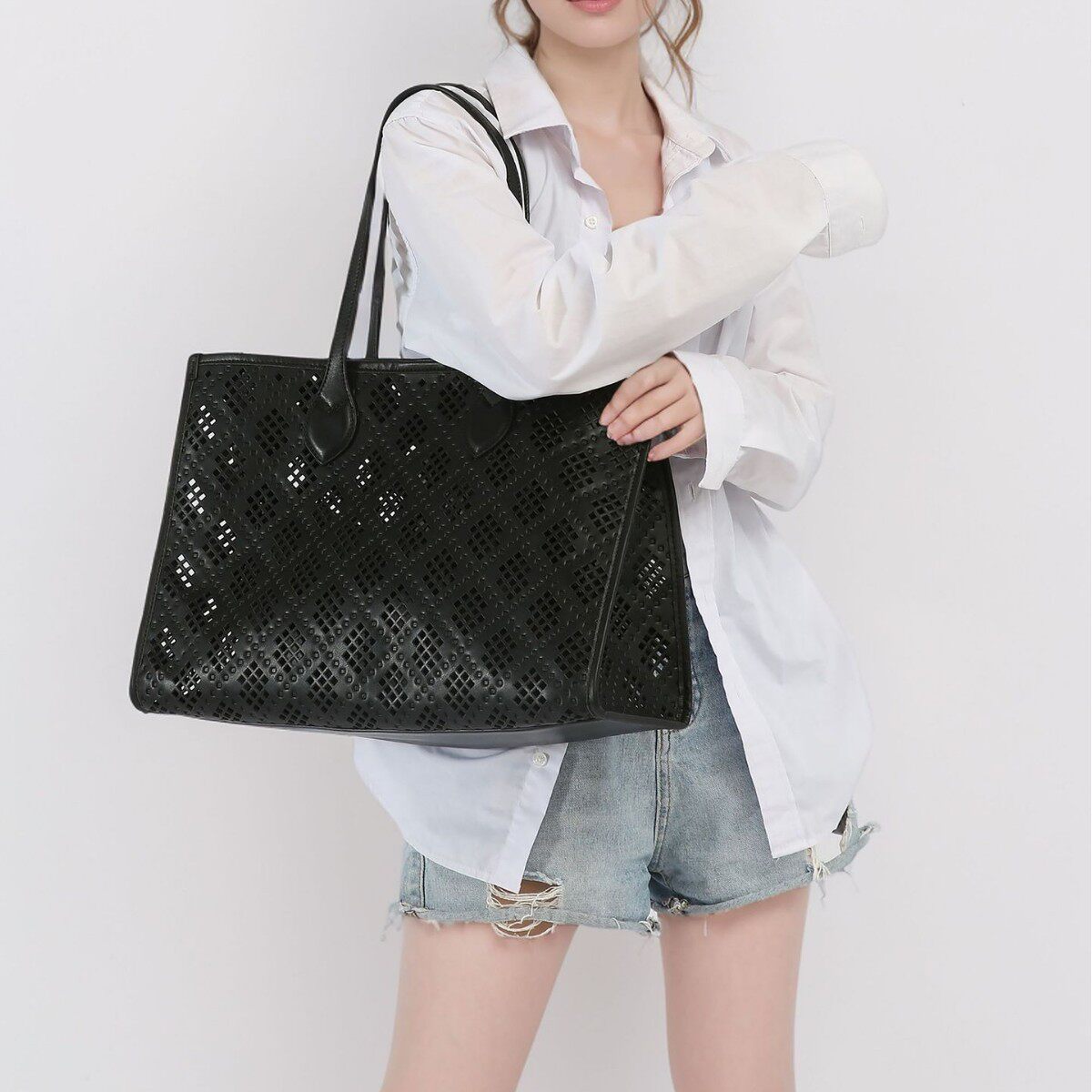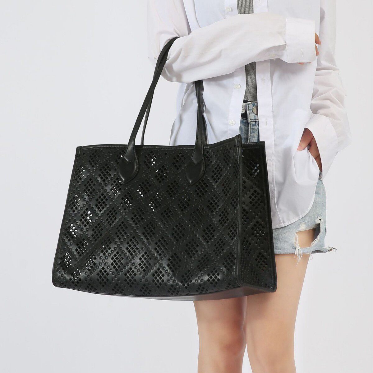 Túi Tote Nữ Lỗ Họa Tiết Retro là một sản phẩm thuộc danh mục Túi xách Nữ, kiểu dáng túi tote Nữ tiện dụng. Chiếc túi xách tay Nữ này có thiết kế lỗ họa tiết retro độc đáo, kèm theo một túi nhỏ bên trong để đựng đồ cá nhân. Túi có kích thước lớn, đựng vừa khổ A4, phù hợp với nhiều mục đích sử dụng như đi làm, đi học hoặc đi chơi. Chất liệu da bóng tạo nên vẻ ngoài sang trọng và thời trang cho sản phẩm. Túi có màu đen dễ dàng phối đồ. Đây là một lựa chọn tuyệt vời cho các cô gái yêu thích phong cách retro và sự tiện lợi. | Tên sản phẩm: Túi Tote Nữ Lỗ Họa Tiết Retro Kèm Túi Nhỏ Da Bóng Đựng Vừa A4 Màu Đen. | Mã sản phẩm: A2372 - Giá: 990000đ. | Mã nhà sản xuất: GUDAT - G03 | Danh mục sản phẩm: Túi tote Nữ - Túi xách tay Nữ.Hình ảnh sản phẩm