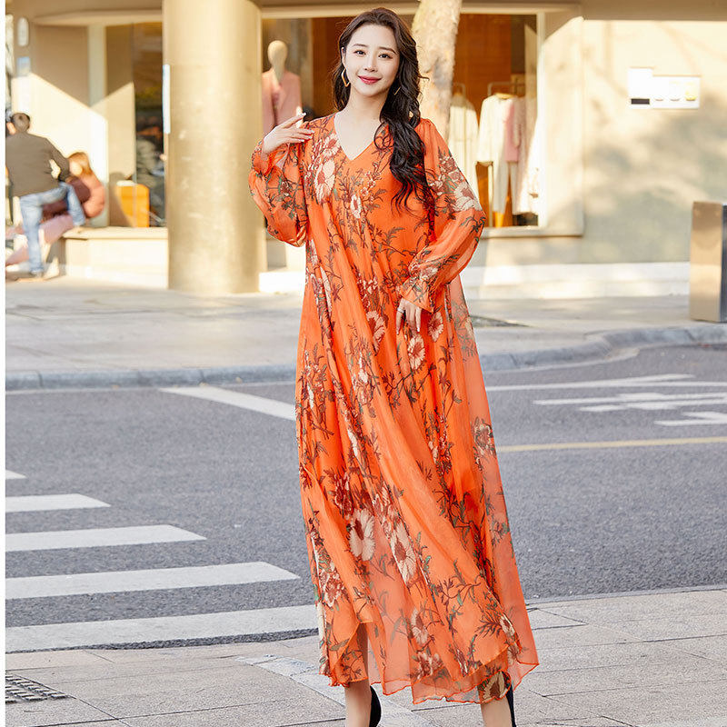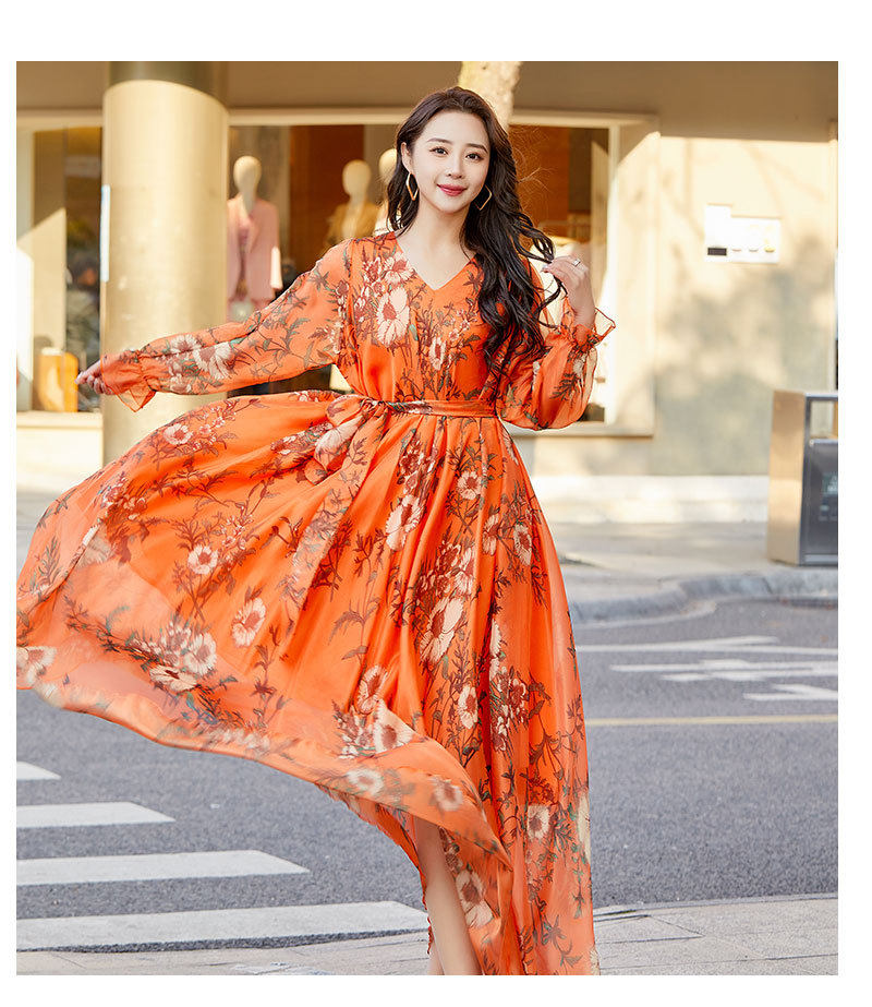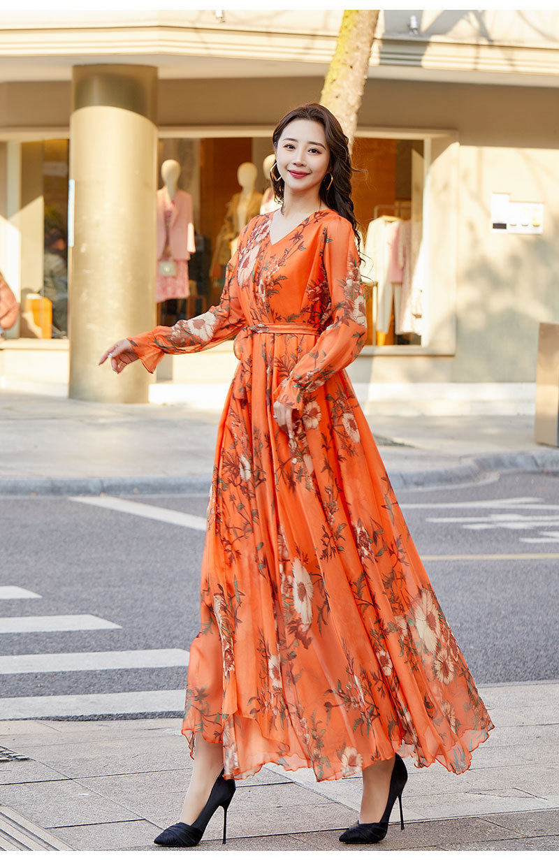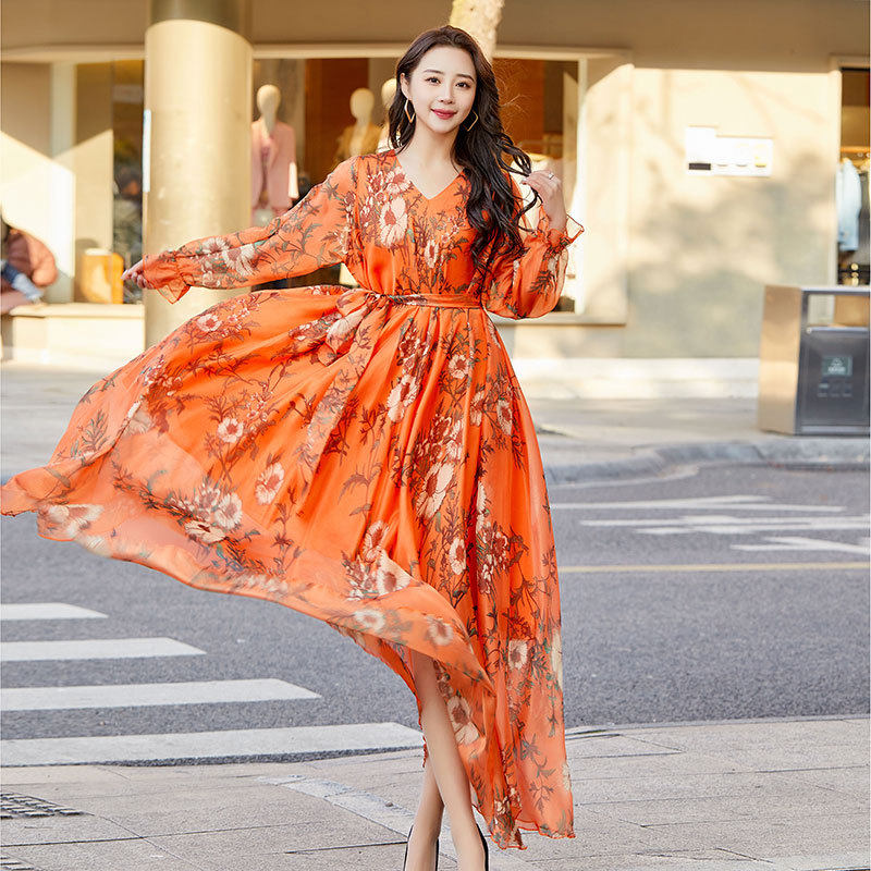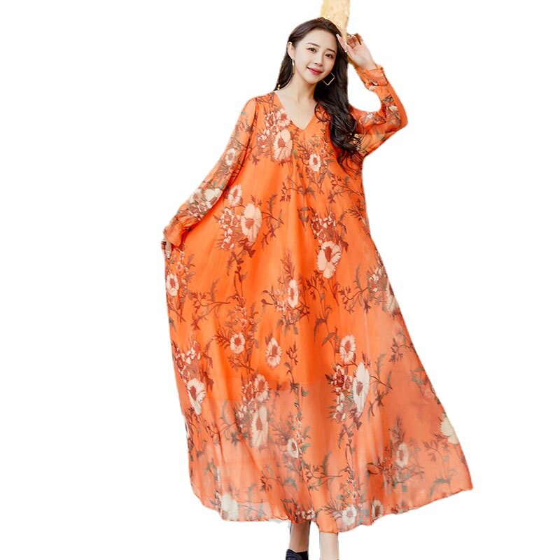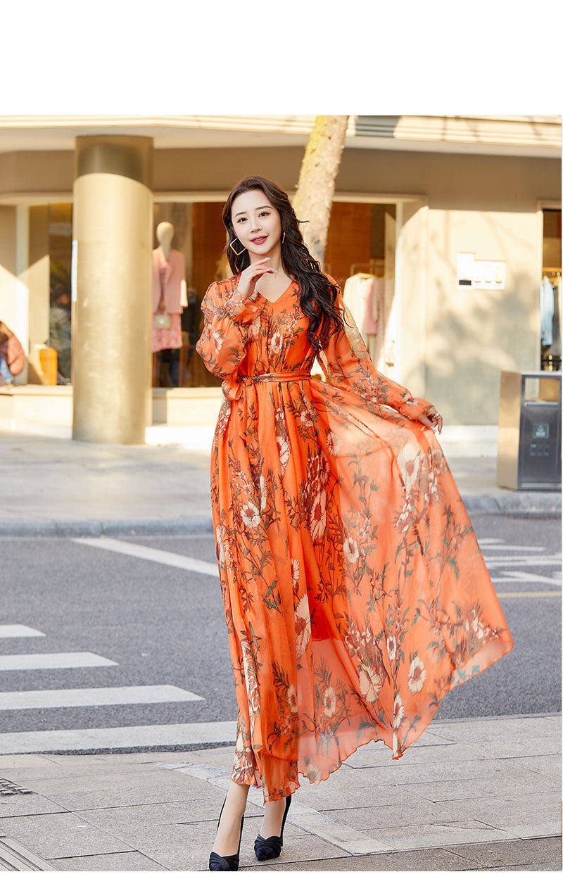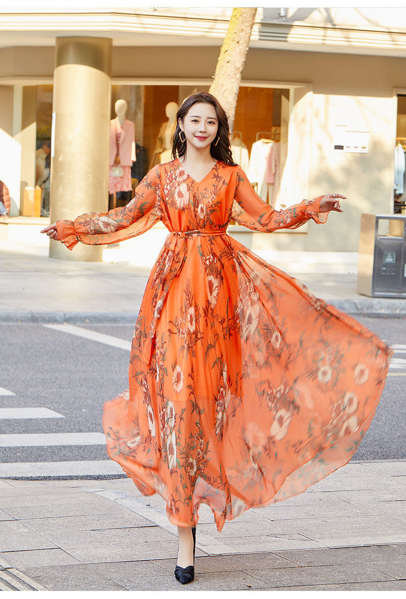 Váy voan dáng dài tay dài họa tiết hoa là sản phẩm thời trang nữ lý tưởng cho mùa hè. Thuộc danh mục váy đầm nữ, chiếc váy dài tay nữ này mang đến vẻ đẹp dịu dàng, nữ tính. Chất liệu voan mềm mại, thoáng mát, phù hợp cho những chuyến đi biển hoặc dạo phố. Họa tiết hoa trên nền vải màu cam tạo nên sự tươi trẻ, năng động. Với thiết kế dáng dài, tay dài kín đáo, váy voan giúp bạn tự tin khoe dáng. Chiếc váy này chắc chắn sẽ là lựa chọn hoàn hảo cho tủ đồ của bạn. | Tên sản phẩm: Váy Voan Dáng Dài Tay Dài Họa Tiết Hoa Đi Biển Mùa Hè Màu Cam. | Mã sản phẩm: H5179 - Giá: 890000đ. | Mã nhà sản xuất: TARYUN - G03 | Danh mục sản phẩm: Váy đầm Nữ - Váy dài tay Nữ.Hình ảnh sản phẩm