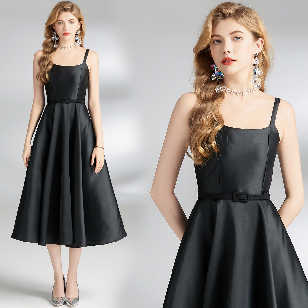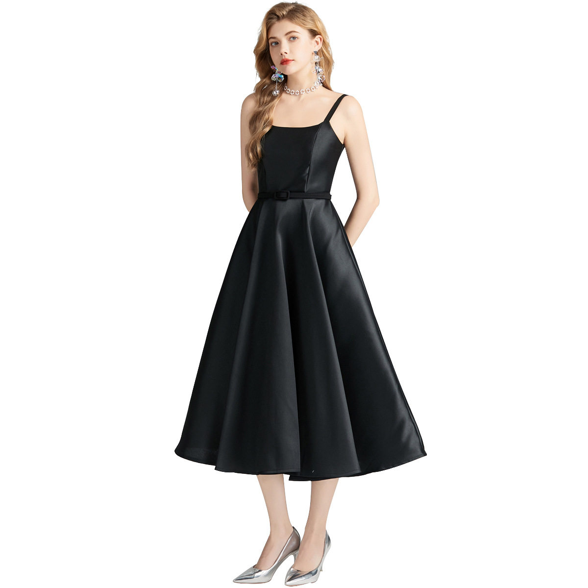 Váy Yếm dáng chữ A Thắt Eo là mẫu Váy liền thân Nữ mang phong cách Pháp đầy sang trọng và quyến rũ. Thiết kế váy yếm với phần thân trên ôm sát, thắt eo tôn dáng, phần dưới xòe nhẹ tạo nên vẻ đẹp cổ điển. Váy liền thân Nữ dáng chữ A giúp che khuyết điểm, phù hợp với nhiều dáng người. Màu đen thanh lịch, dễ dàng phối đồ, thích hợp cho nhiều dịp khác nhau. Chất liệu cao cấp tạo cảm giác thoải mái khi mặc. Đây là lựa chọn hoàn hảo cho những cô nàng yêu thích vẻ đẹp nữ tính. | Tên sản phẩm: Váy Yếm dáng chữ A Thắt Eo Phong Cách Pháp Sang Trọng Màu Đen. | Mã sản phẩm: K3280 - Giá: 980000đ. | Mã nhà sản xuất: GUDG - G03 | Danh mục sản phẩm: Váy đầm Nữ - Váy liền thân Nữ.Hình ảnh sản phẩm