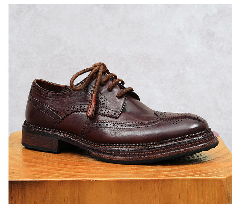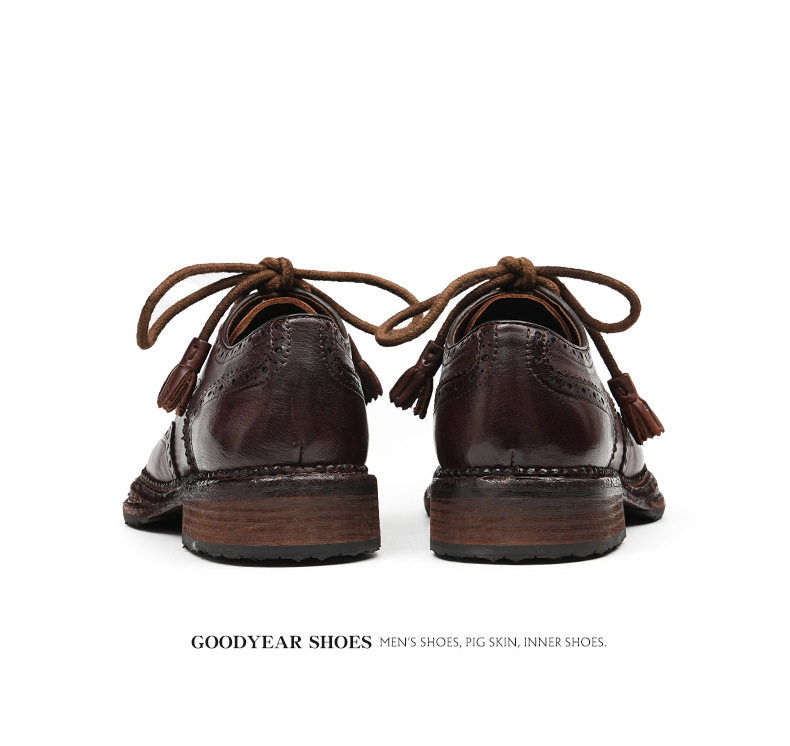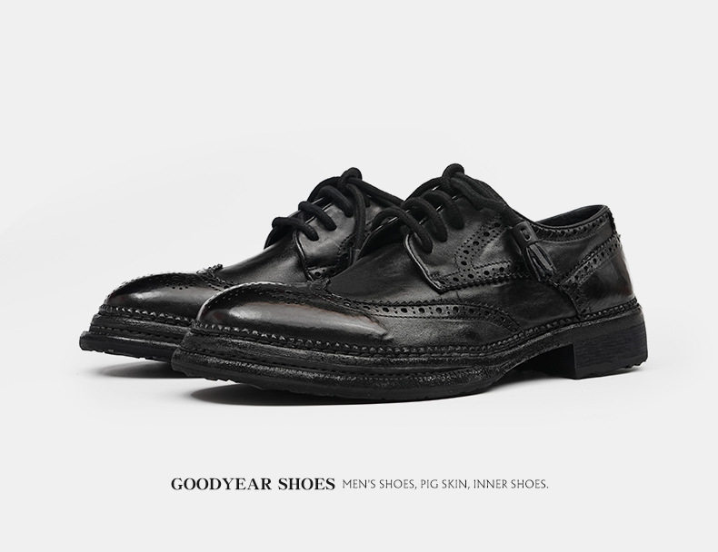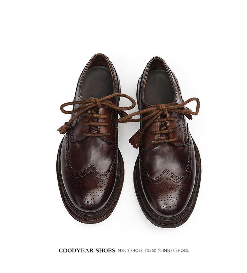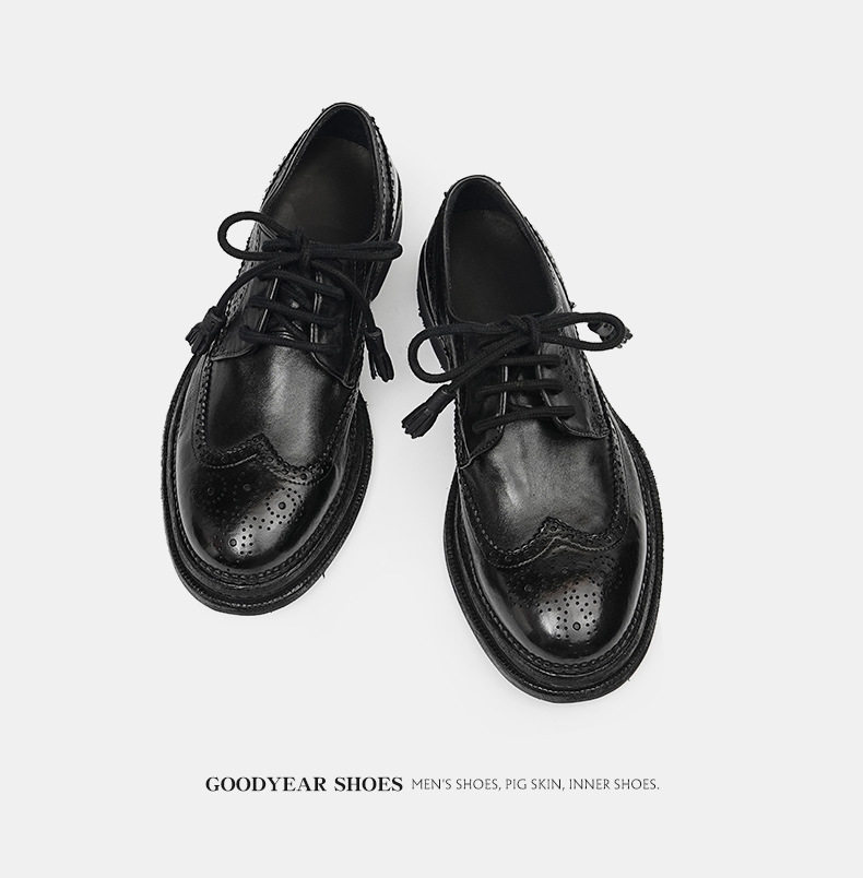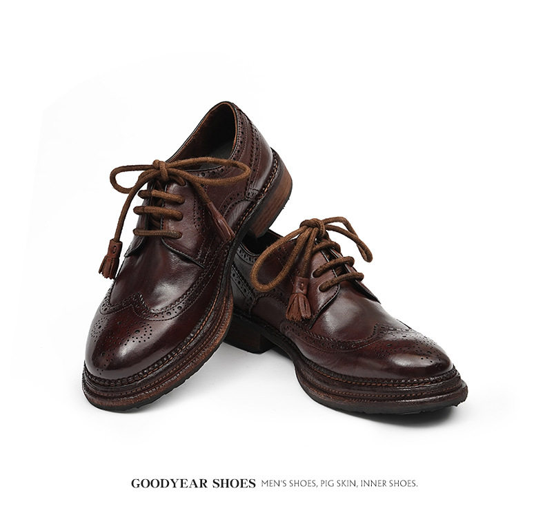 Giày Tây Buộc Dây Nam Da Thật Goodyear là sản phẩm giày da nam cao cấp thuộc danh mục Giày dép Nam. Với thiết kế thủ công tỉ mỉ, giày tây nam này mang đến vẻ ngoài lịch lãm và sang trọng. Chất liệu da thật Goodyear bền bỉ, cùng các chi tiết khắc họa tiết Brogue tinh tế, tạo nên điểm nhấn độc đáo. Giày có mũi tròn, chiều cao đế khoảng 3cm, phù hợp với nhiều phong cách thời trang khác nhau. Sản phẩm giày da nam này có hai màu đen và nâu cổ điển, dễ dàng phối đồ. Đây là sự lựa chọn hoàn hảo cho các quý ông. | Tên sản phẩm: Giày Tây Buộc Dây Nam Da Thật Goodyear Thủ Công Mũi Tròn Khắc Họa Tiết Brogue Chiều Cao Đế Khoảng 3cm Màu Đen, Nâu. | Mã sản phẩm: A0244 - Giá: 4300000đ. | Mã nhà sản xuất: SHRYIC - G06 | Danh mục sản phẩm: Giày tây Nam - Giày da Nam.Hình ảnh sản phẩm