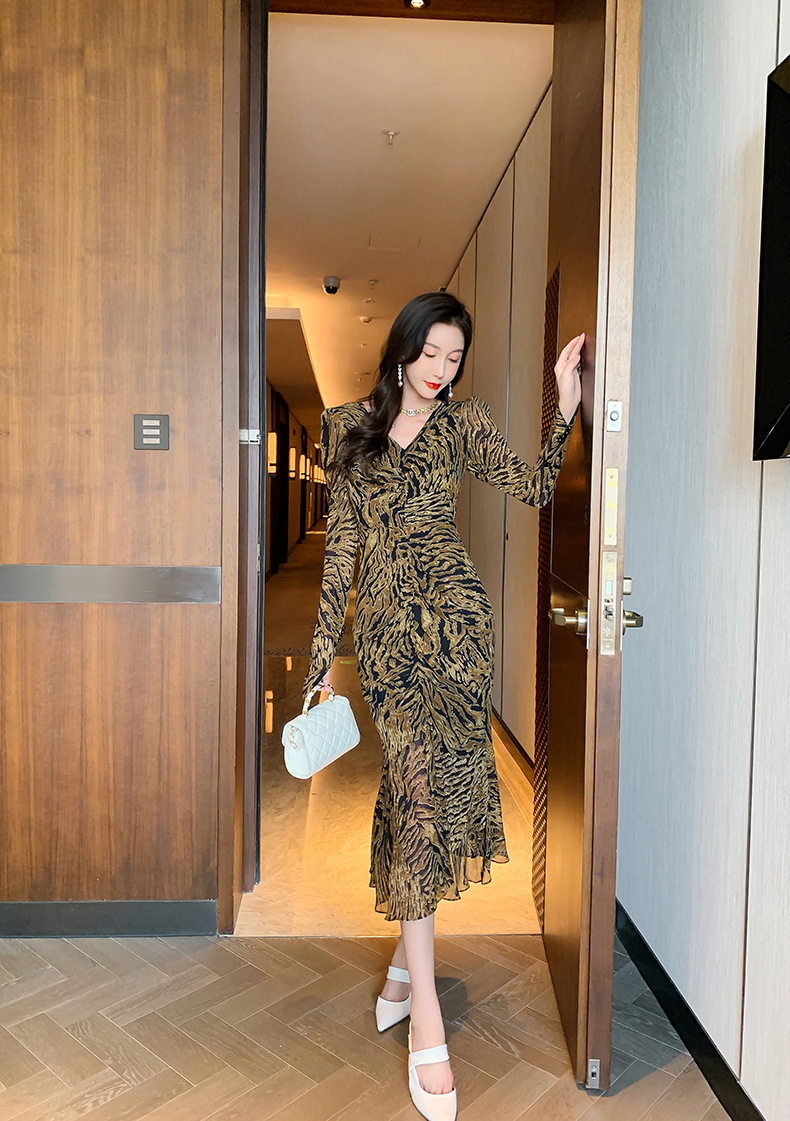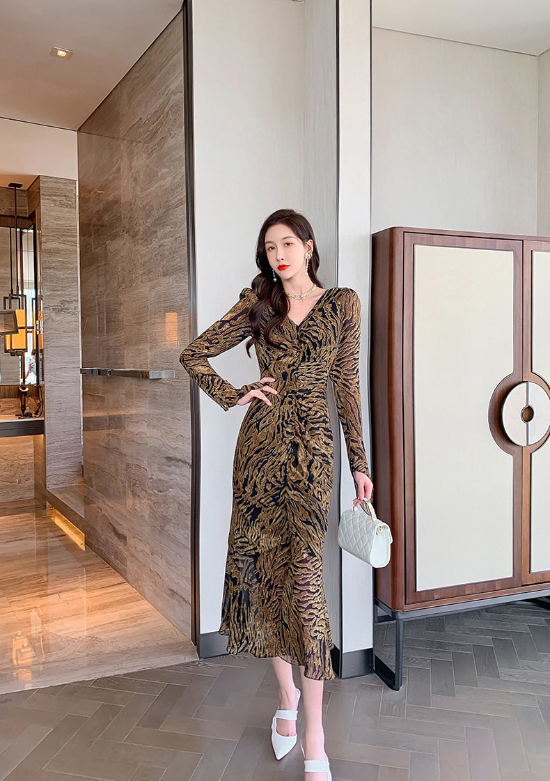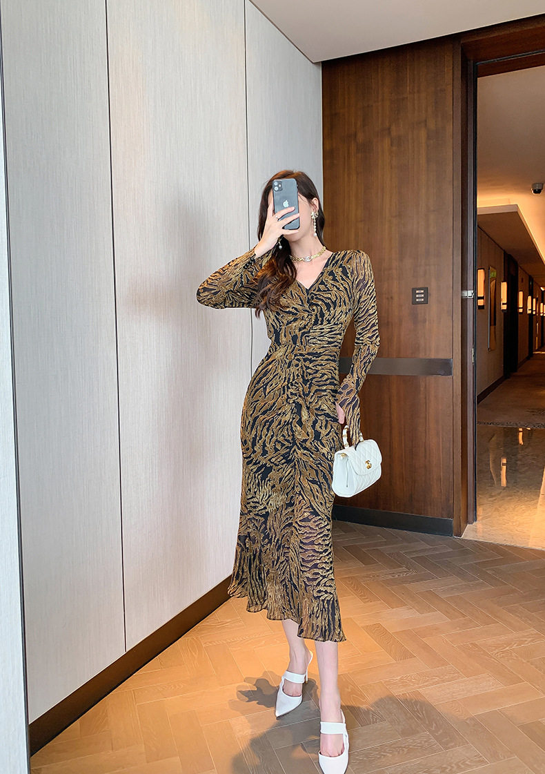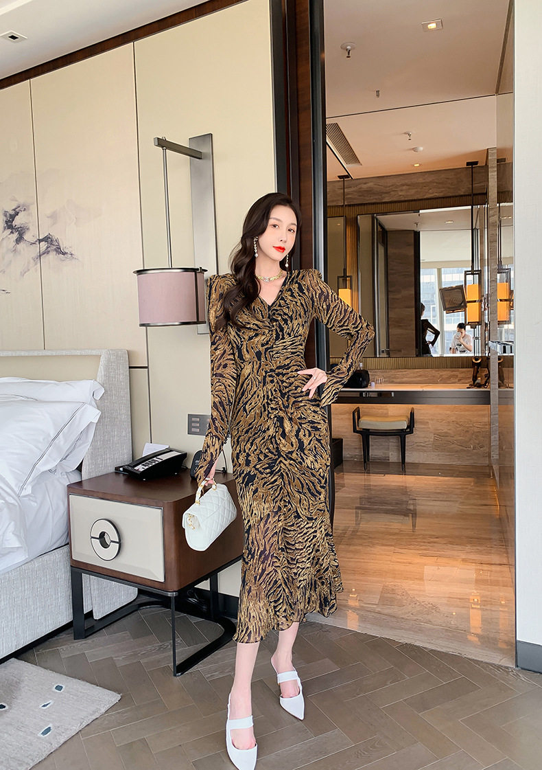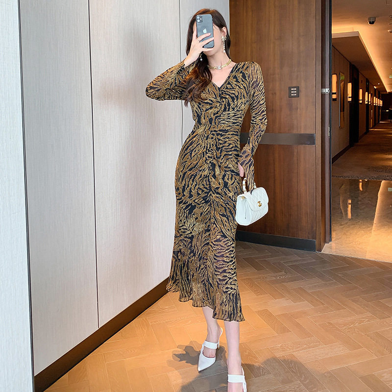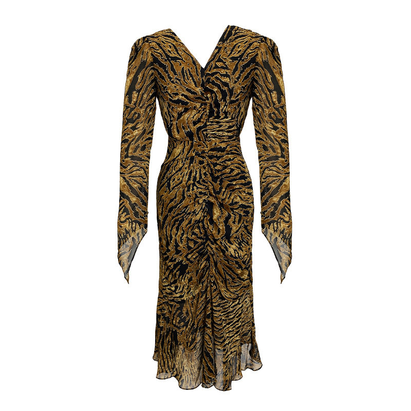Chiếc Váy liền thân Nữ Thiết Kế Cổ chữ V với họa tiết da báo độc đáo là sản phẩm thuộc danh mục Thời trang Nữ, kiểu dáng Váy đầm Nữ thời thượng. Chiếc Váy liền thân Nữ này mang đến vẻ ngoài quyến rũ và cá tính cho phái đẹp. Thiết kế cổ chữ V tôn lên vẻ đẹp của phần Cổ chữ Và xương quai xanh. Họa tiết da báo trên nền vải tạo điểm nhấn nổi bật. Tay áo dài và chân váy xếp ly bèo nhún mang đến sự mềm mại và duyên dáng. Váy có hai màu vàng và đen. Sản phẩm này phù hợp cho nhiều dịp khác nhau, từ dạo phố đến các buổi tiệc. | Tên sản phẩm: Váy liền thân Nữ Thiết Kế Cổ chữ V In Họa Tiết Da Báo Tay Dài Xếp Ly Bèo Nhún Màu Vàng, Đen. | Mã sản phẩm: B7306 - Giá: 1200000đ. | Mã nhà sản xuất: CHDG - G04 | Danh mục sản phẩm: Váy đầm Nữ - Váy liền thân Nữ.Hình ảnh sản phẩm