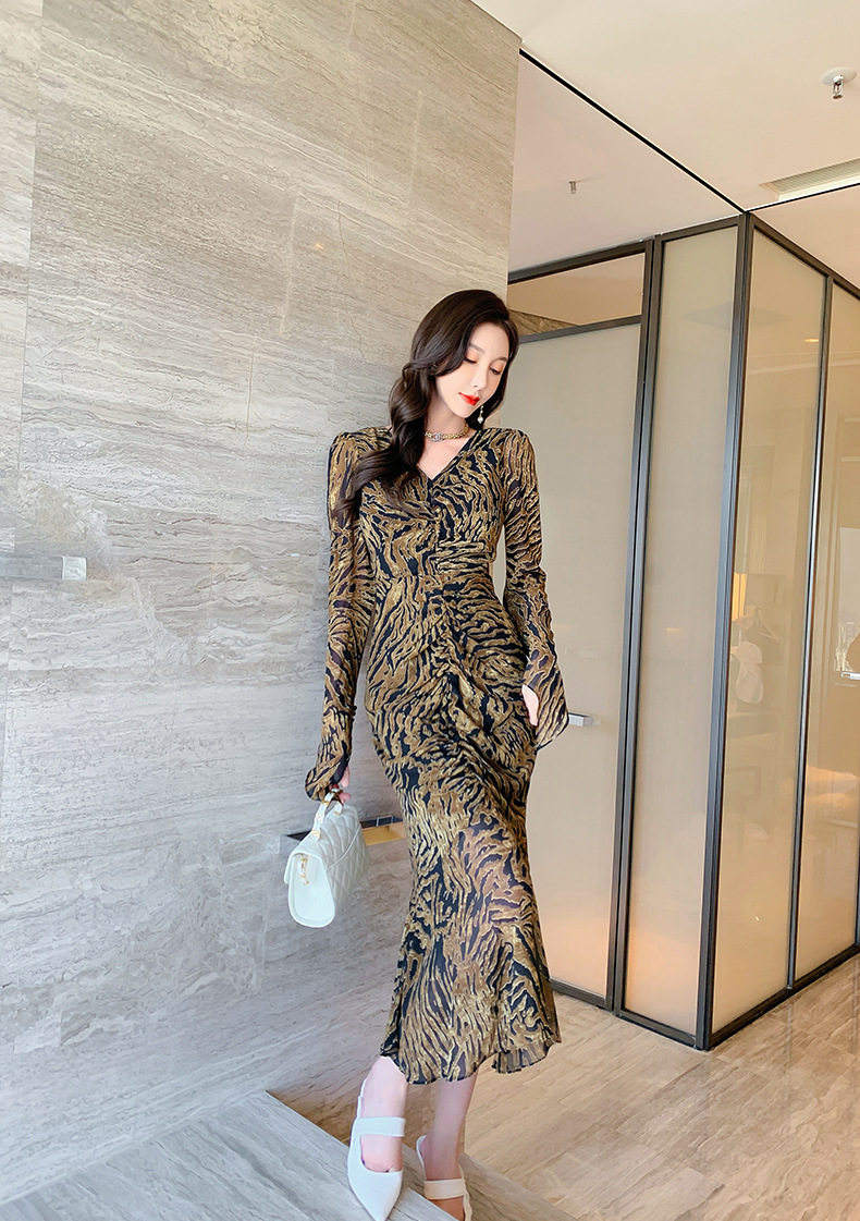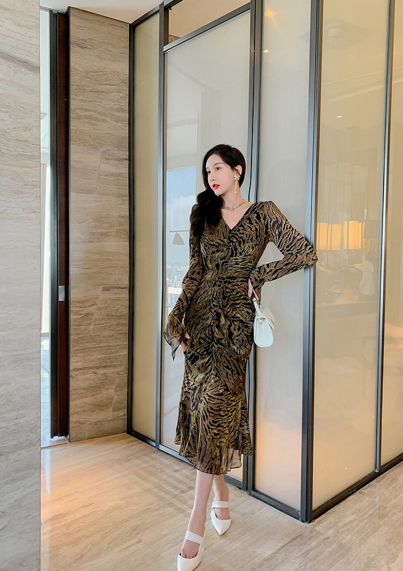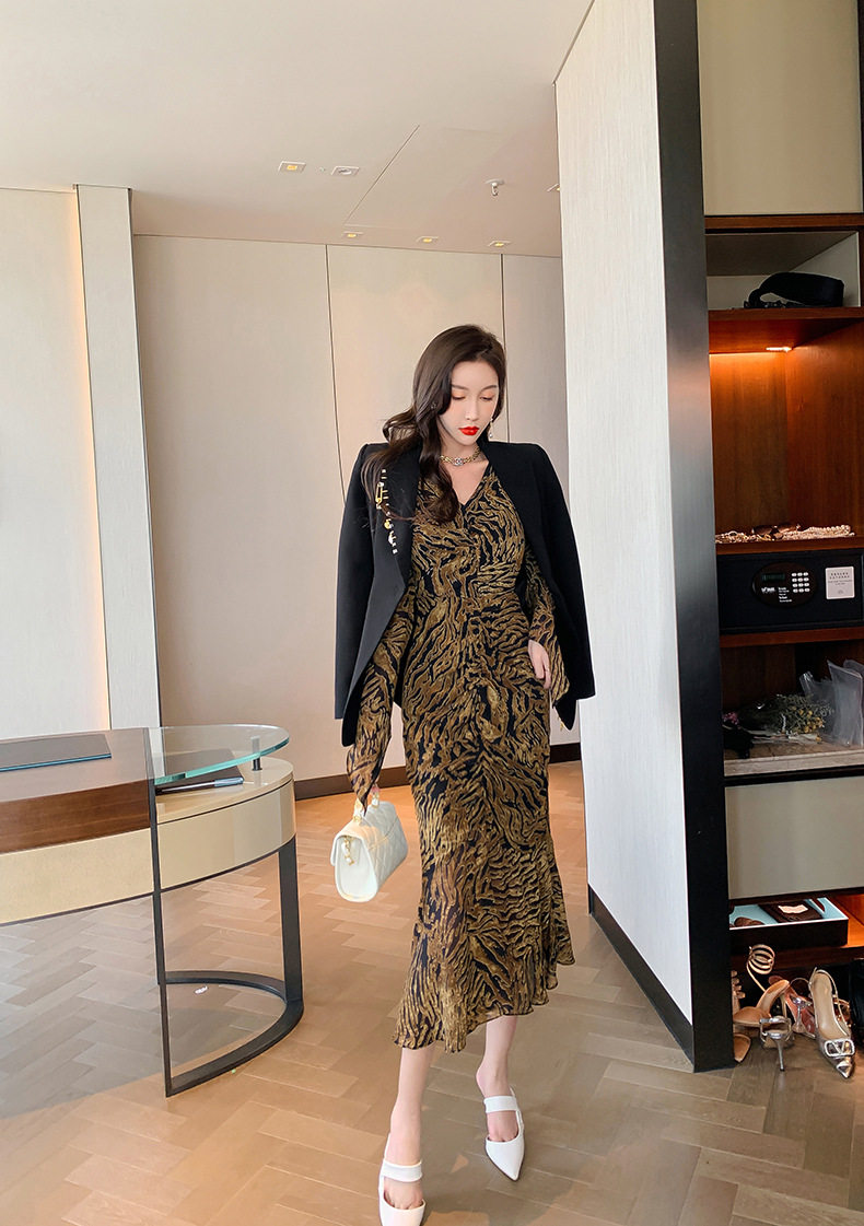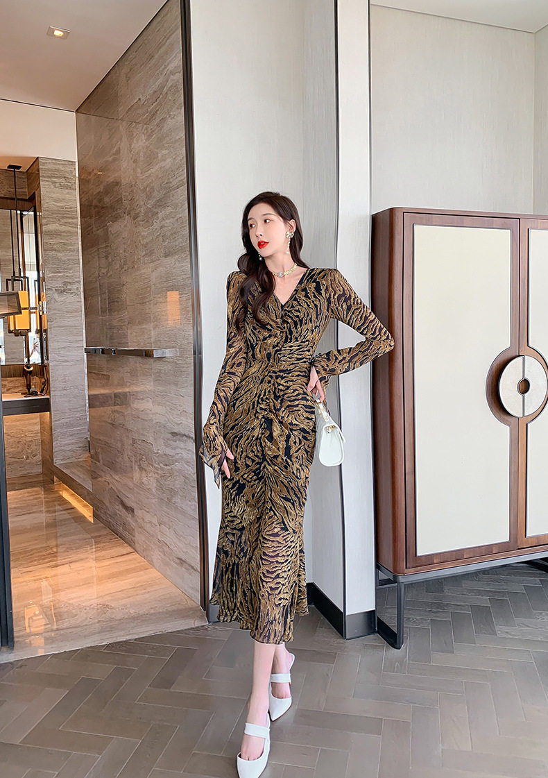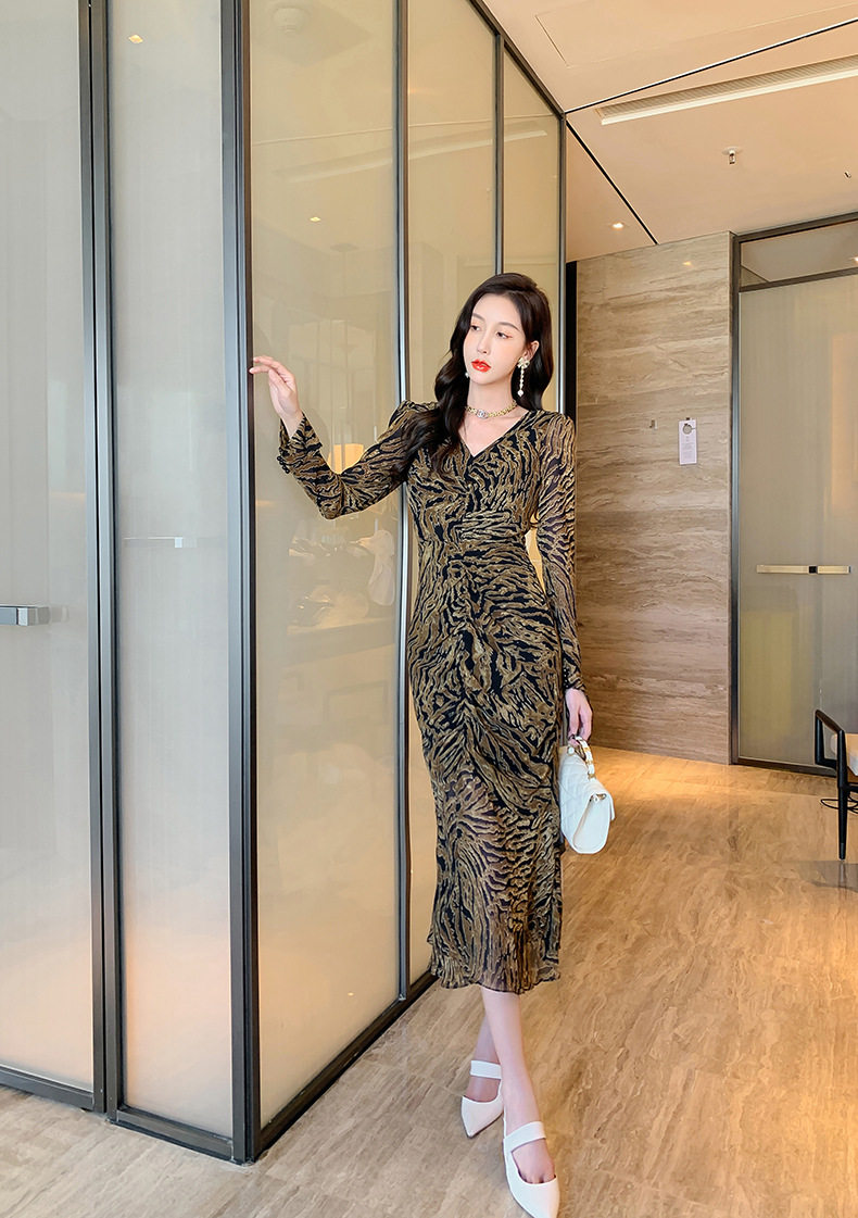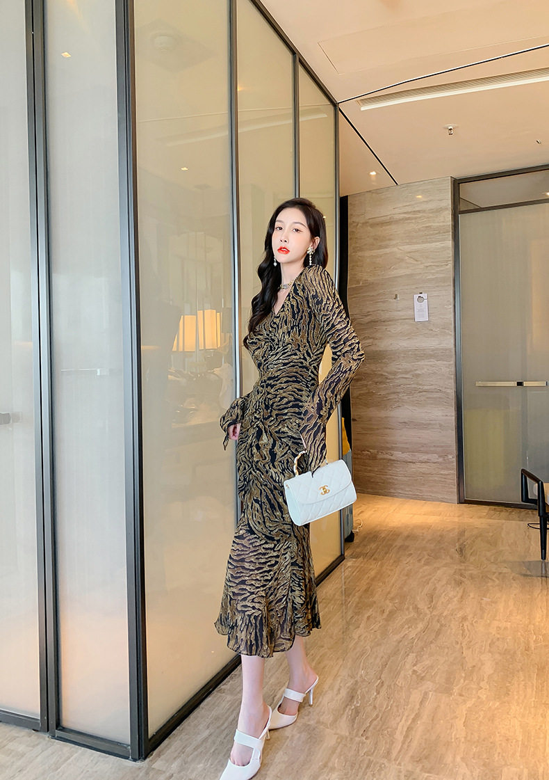 Chiếc Váy liền thân Nữ Thiết Kế Cổ chữ V với họa tiết da báo độc đáo là sản phẩm thuộc danh mục Thời trang Nữ, kiểu dáng Váy đầm Nữ thời thượng. Chiếc Váy liền thân Nữ này mang đến vẻ ngoài quyến rũ và cá tính cho phái đẹp. Thiết kế cổ chữ V tôn lên vẻ đẹp của phần Cổ chữ Và xương quai xanh. Họa tiết da báo trên nền vải tạo điểm nhấn nổi bật. Tay áo dài và chân váy xếp ly bèo nhún mang đến sự mềm mại và duyên dáng. Váy có hai màu vàng và đen. Sản phẩm này phù hợp cho nhiều dịp khác nhau, từ dạo phố đến các buổi tiệc. | Tên sản phẩm: Váy liền thân Nữ Thiết Kế Cổ chữ V In Họa Tiết Da Báo Tay Dài Xếp Ly Bèo Nhún Màu Vàng, Đen. | Mã sản phẩm: B7306 - Giá: 1200000đ. | Mã nhà sản xuất: CHDG - G04 | Danh mục sản phẩm: Váy đầm Nữ - Váy liền thân Nữ.Hình ảnh sản phẩm