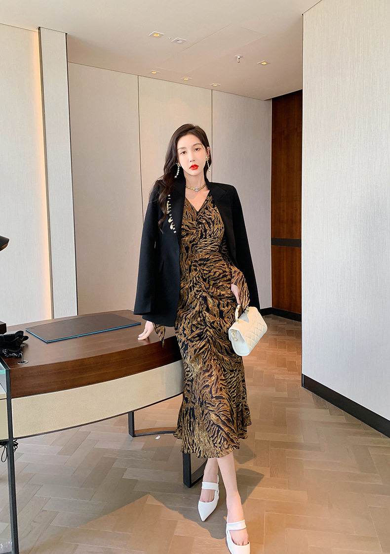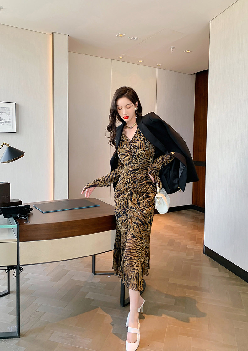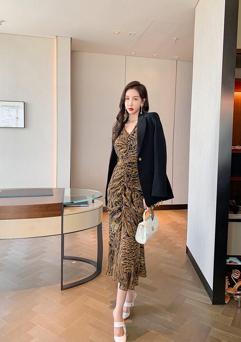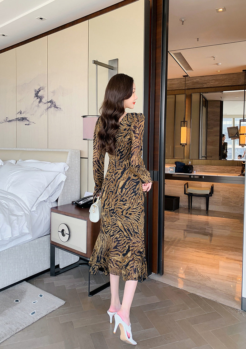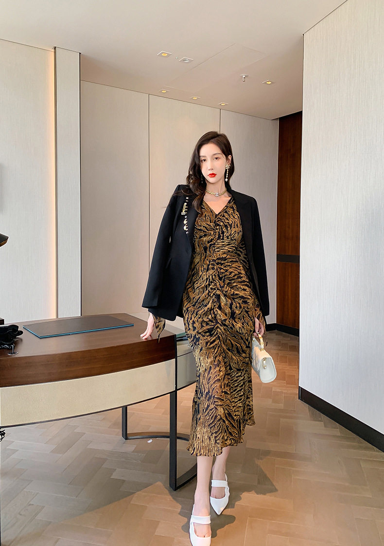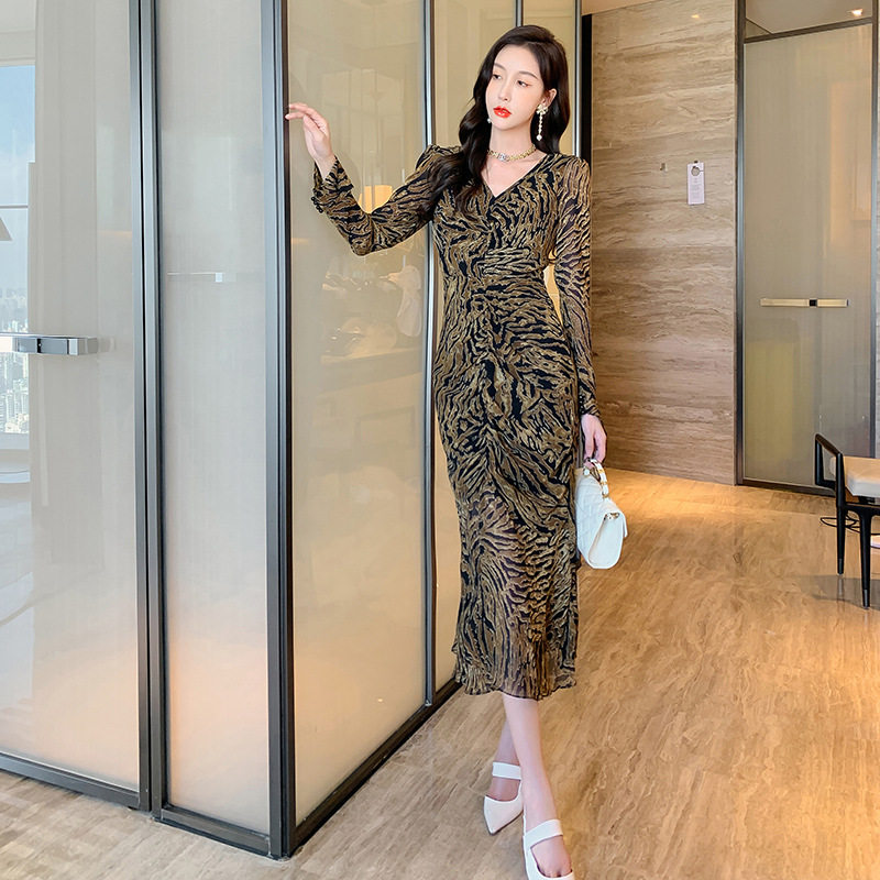 Chiếc Váy liền thân Nữ Thiết Kế Cổ chữ V với họa tiết da báo độc đáo là sản phẩm thuộc danh mục Thời trang Nữ, kiểu dáng Váy đầm Nữ thời thượng. Chiếc Váy liền thân Nữ này mang đến vẻ ngoài quyến rũ và cá tính cho phái đẹp. Thiết kế cổ chữ V tôn lên vẻ đẹp của phần Cổ chữ Và xương quai xanh. Họa tiết da báo trên nền vải tạo điểm nhấn nổi bật. Tay áo dài và chân váy xếp ly bèo nhún mang đến sự mềm mại và duyên dáng. Váy có hai màu vàng và đen. Sản phẩm này phù hợp cho nhiều dịp khác nhau, từ dạo phố đến các buổi tiệc. | Tên sản phẩm: Váy liền thân Nữ Thiết Kế Cổ chữ V In Họa Tiết Da Báo Tay Dài Xếp Ly Bèo Nhún Màu Vàng, Đen. | Mã sản phẩm: B7306 - Giá: 1200000đ. | Mã nhà sản xuất: CHDG - G04 | Danh mục sản phẩm: Váy đầm Nữ - Váy liền thân Nữ.Hình ảnh sản phẩm